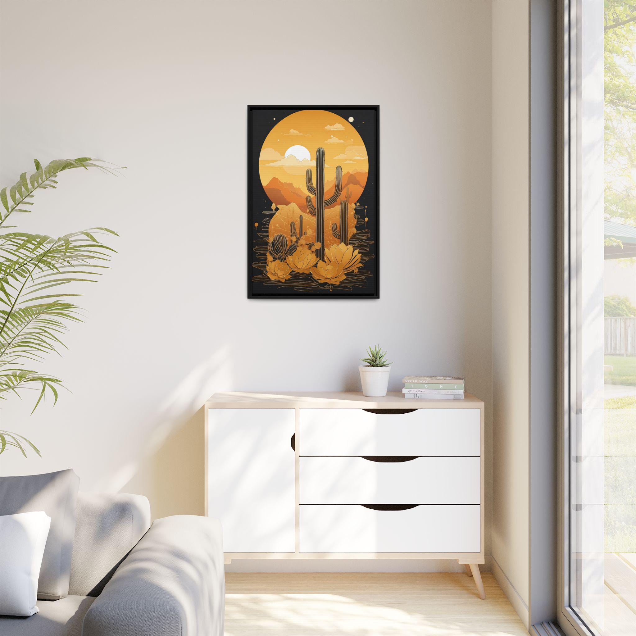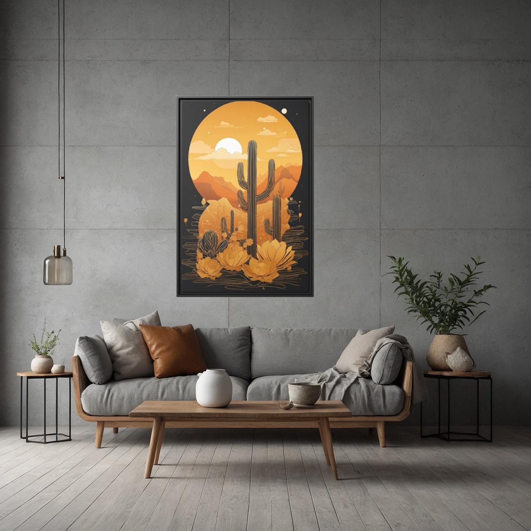 This artwork is ideal for adding a touch of modern desert charm to any space. With its neutral palette and golden highlight, it works beautifully in living rooms, bedrooms, or offices, offering both calmness and contemporary elegance.