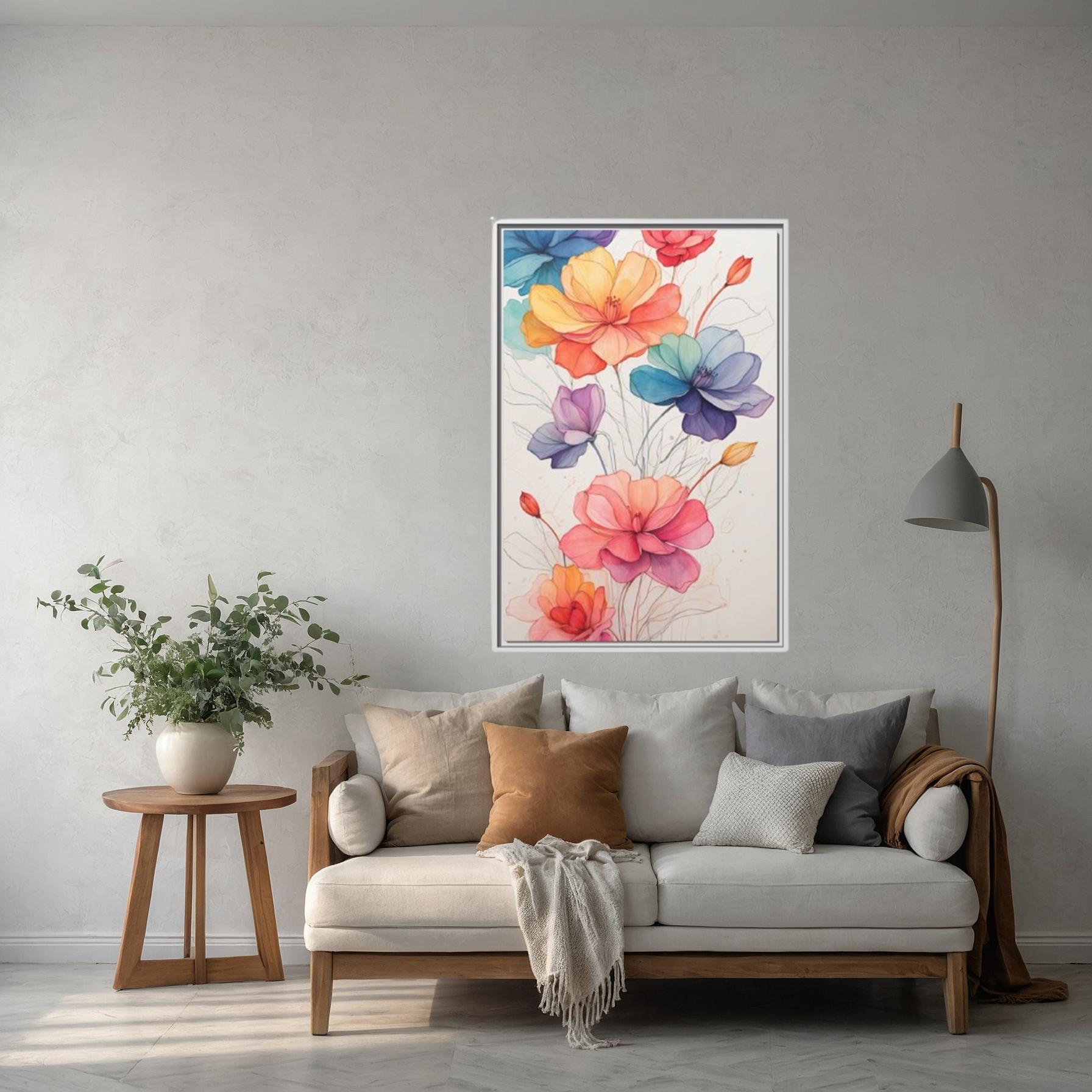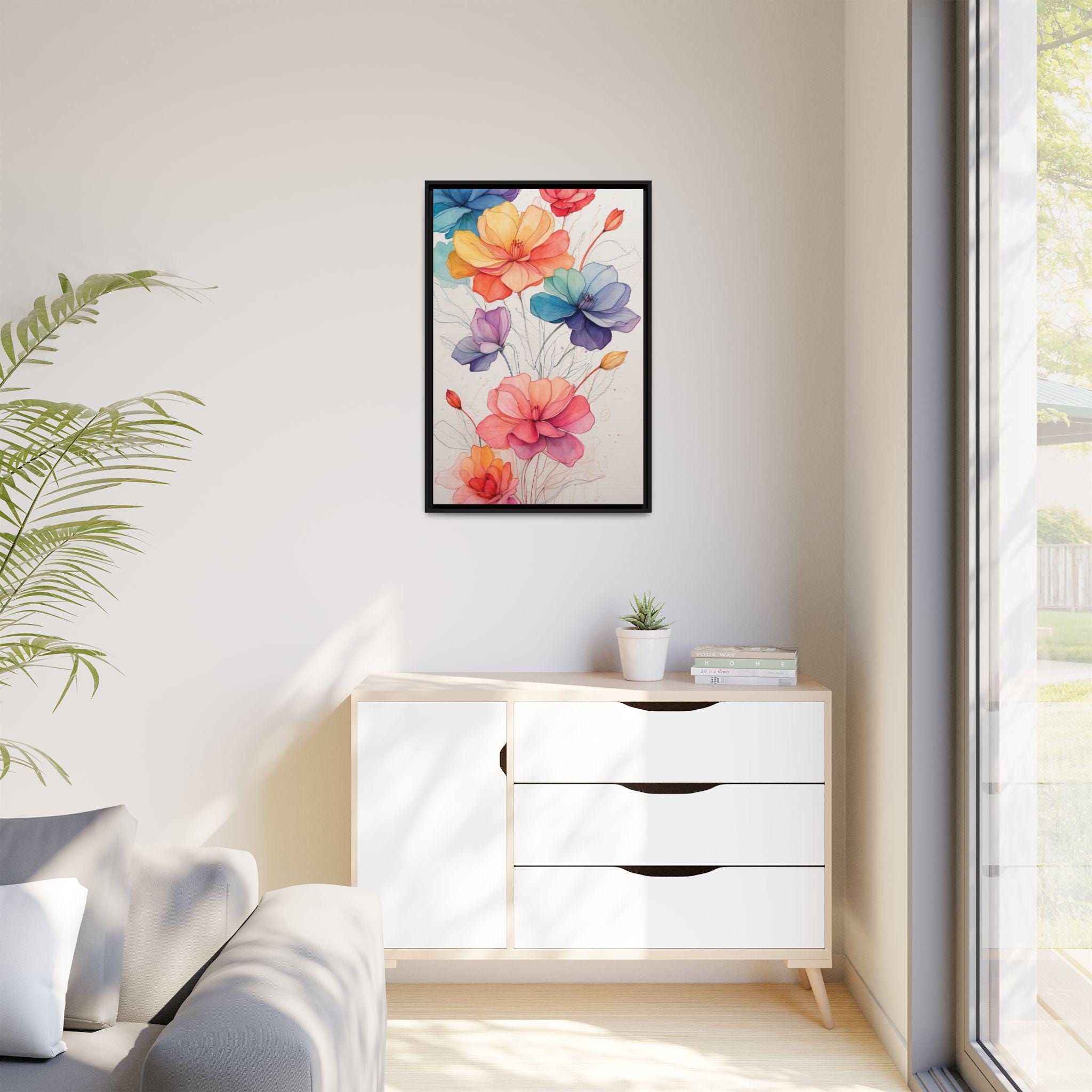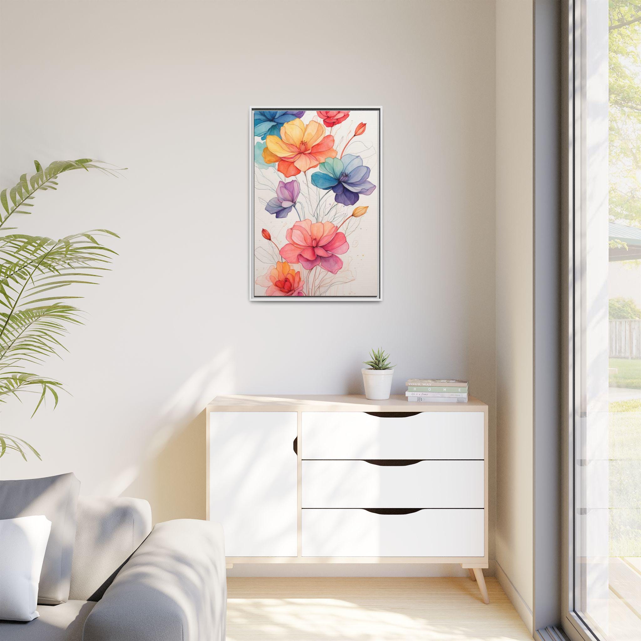 Ideal for bedrooms, living rooms, or office spaces, this canvas print brings energy and sophistication to any interior. Its playful yet refined color palette makes it a versatile focal point, perfect for contemporary, eclectic, or modern botanical décor.