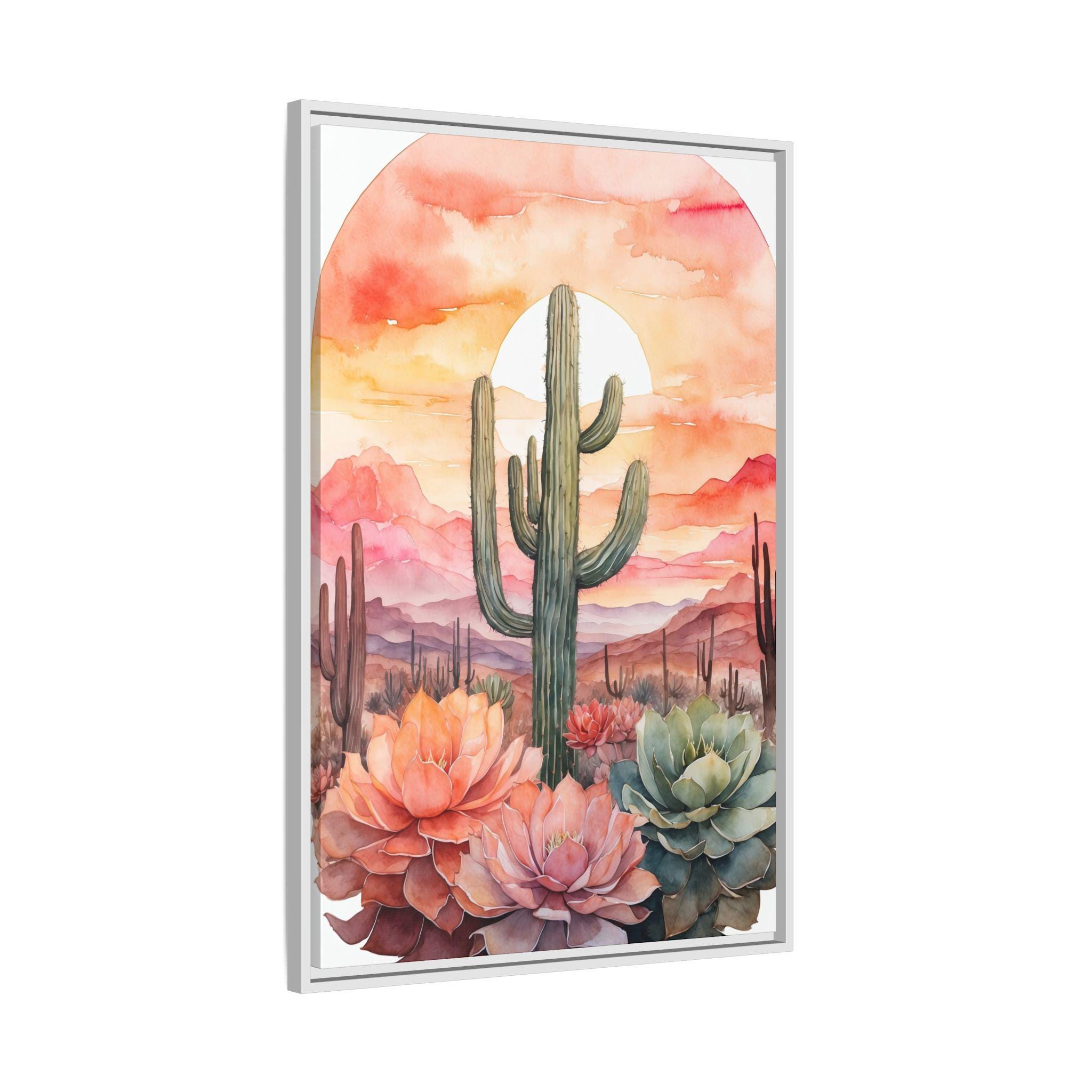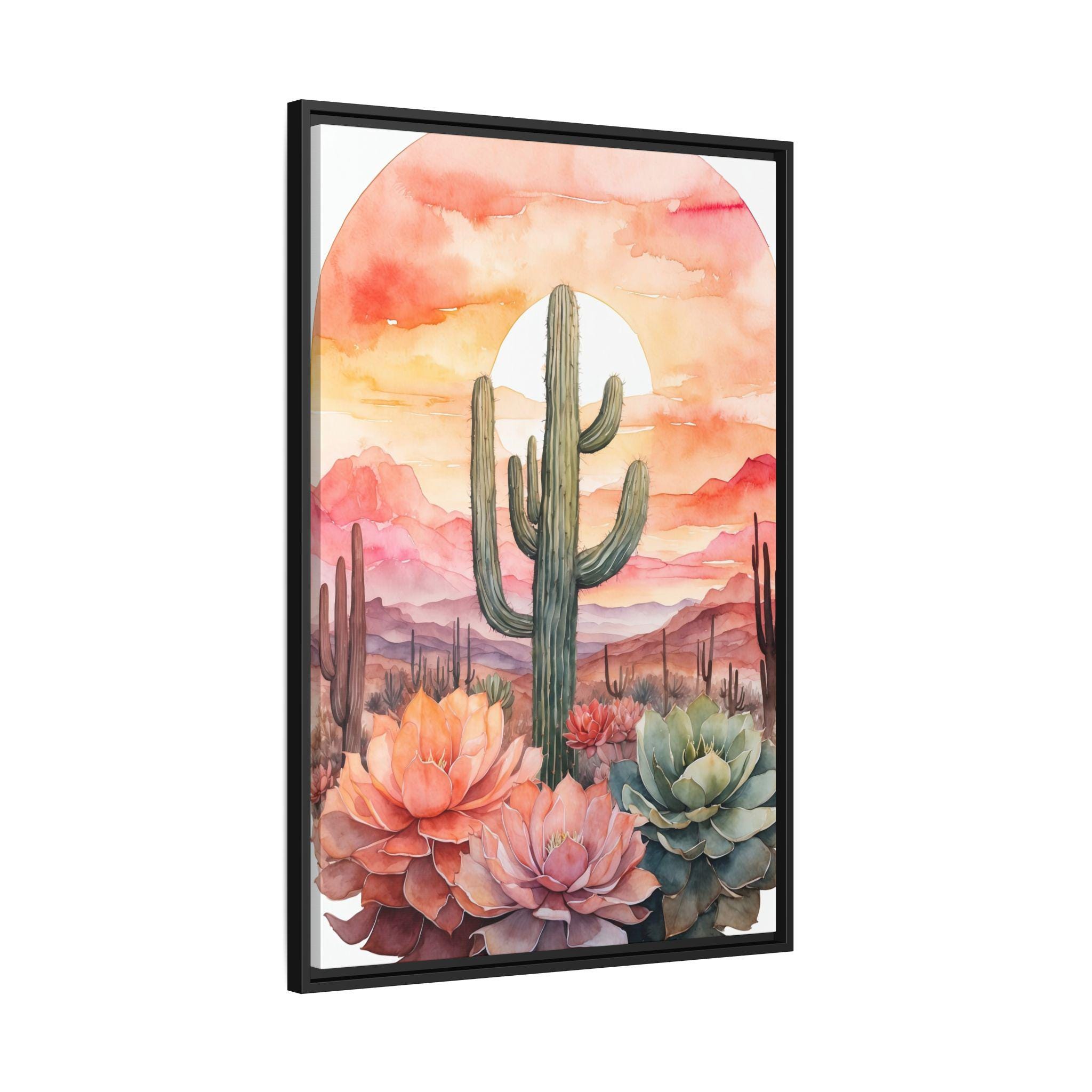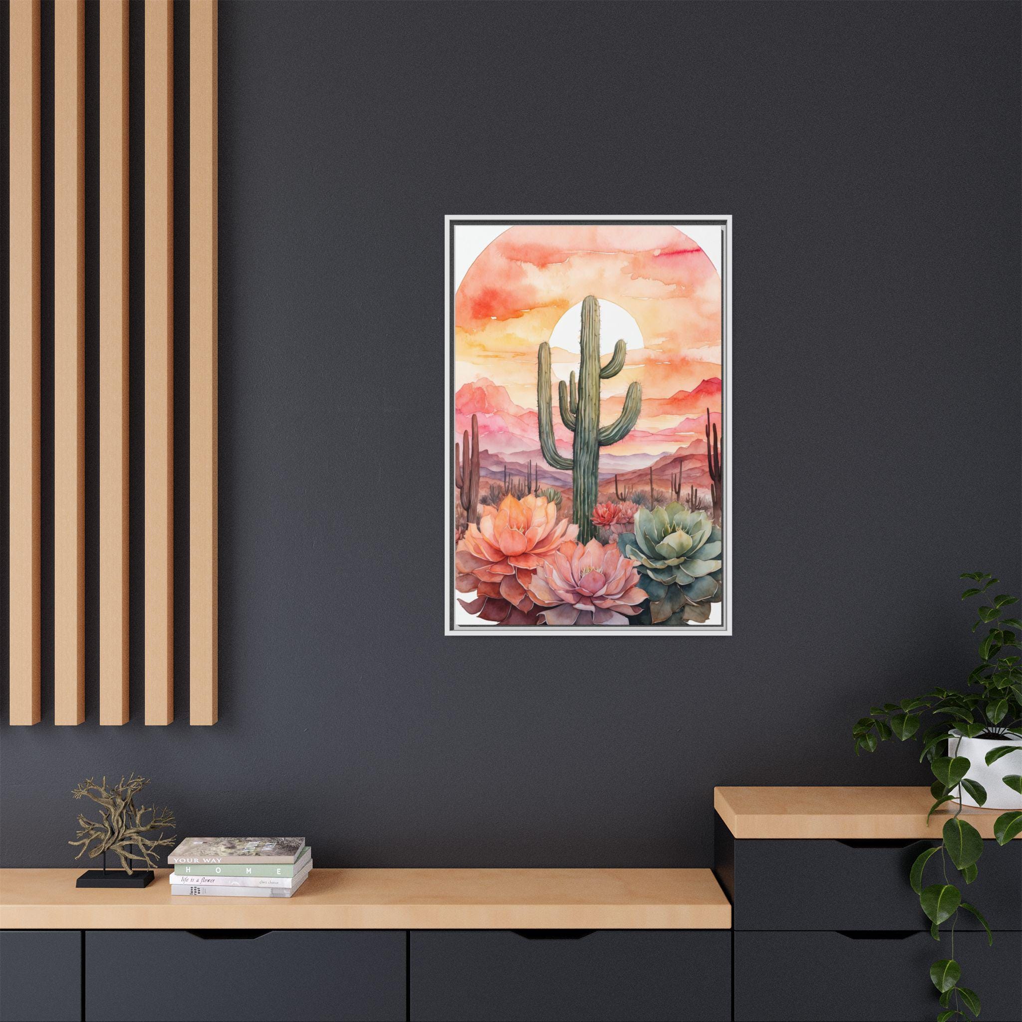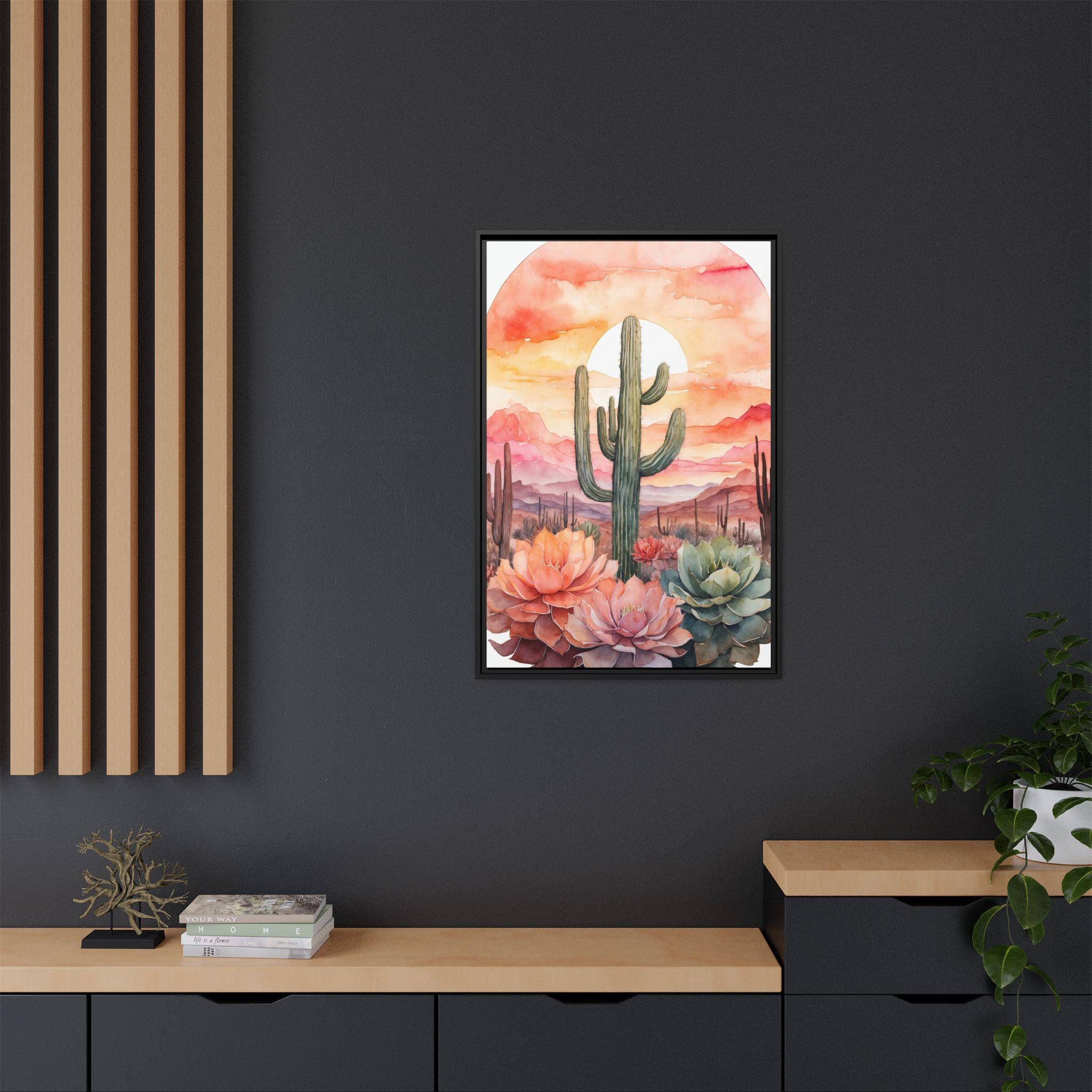 This artwork is perfect for creating a serene and inviting atmosphere in living rooms, bedrooms, or offices. Its versatile palette and modern botanical design make it an easy match for a variety of interior styles, while the cactus motif adds a touch of contemporary desert charm.