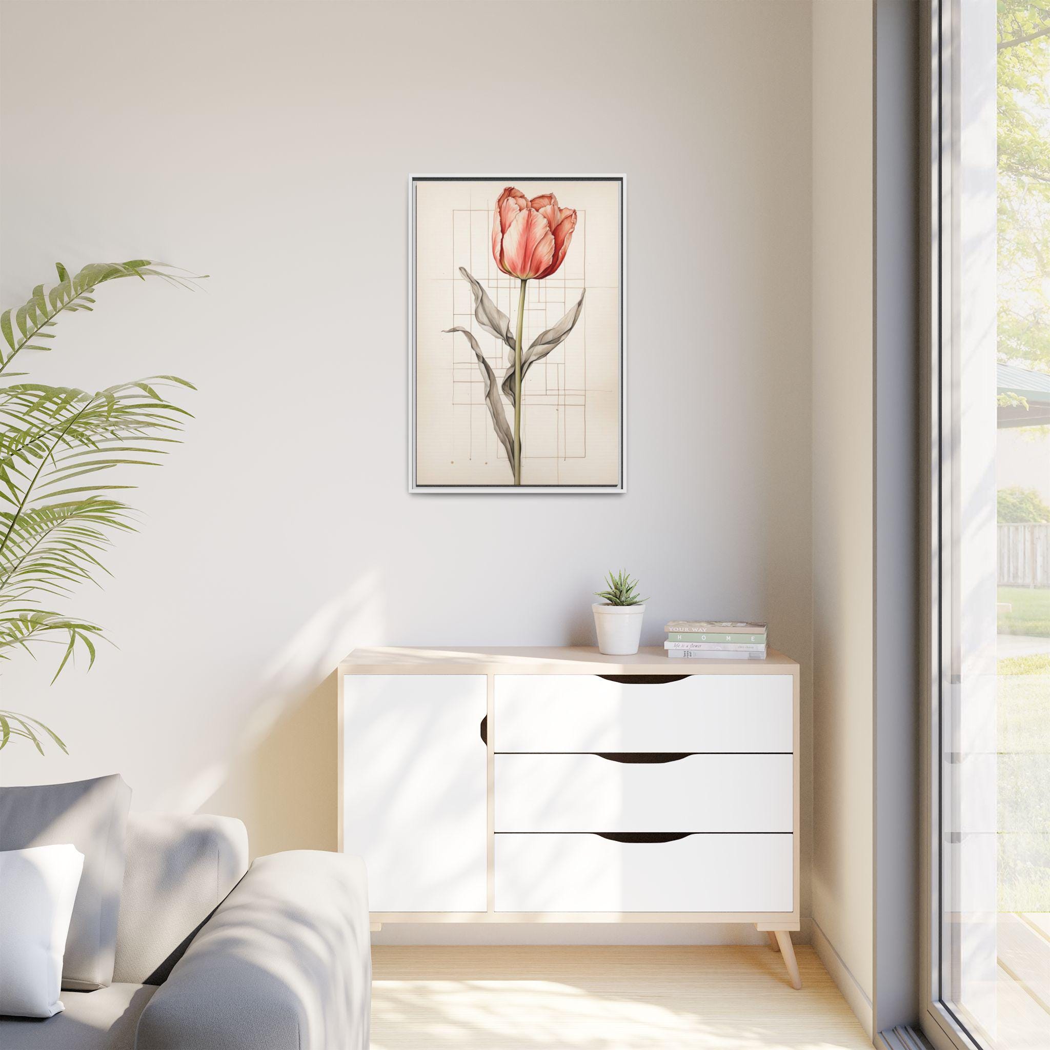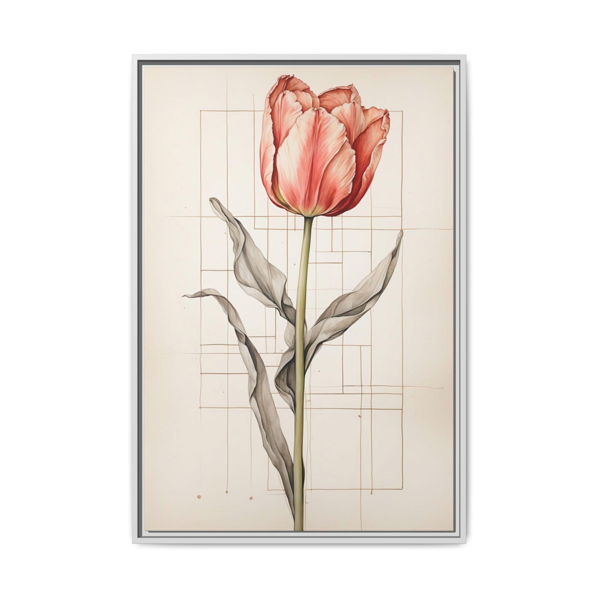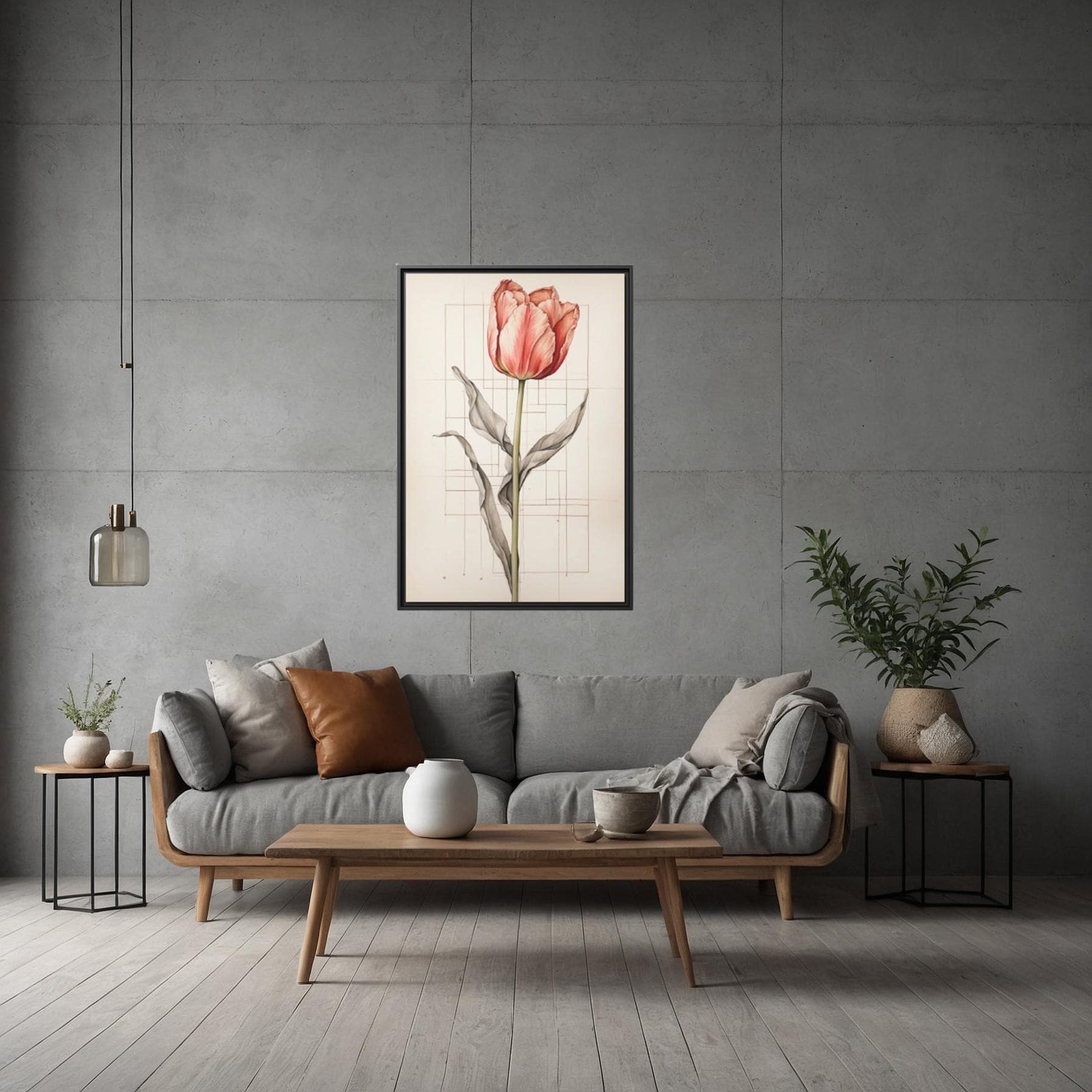 "Soft Tulip Lines" presents a continuous line tulip layered over geometric beige squares and subtle watercolor textures. The composition highlights the beauty of simplicity while infusing a modern botanical touch with refined elegance.