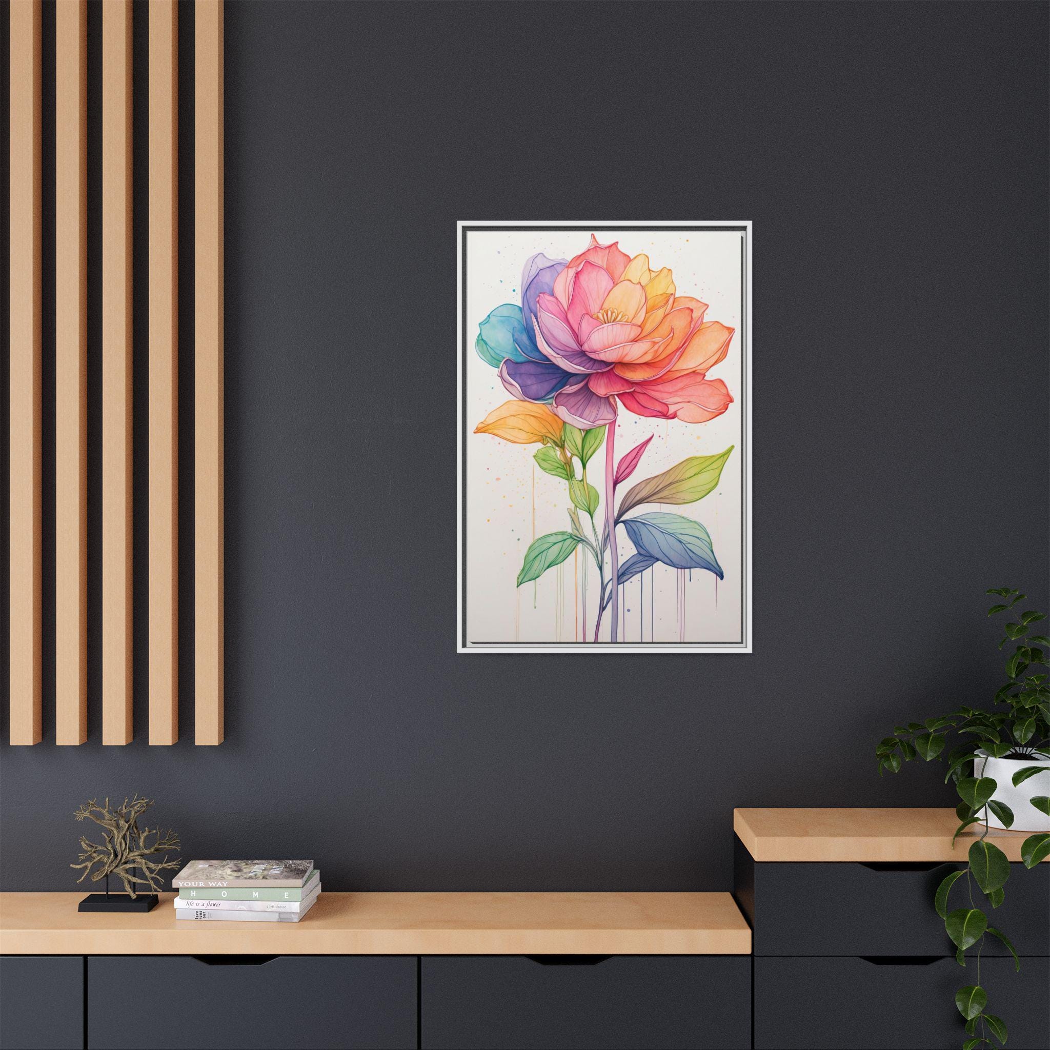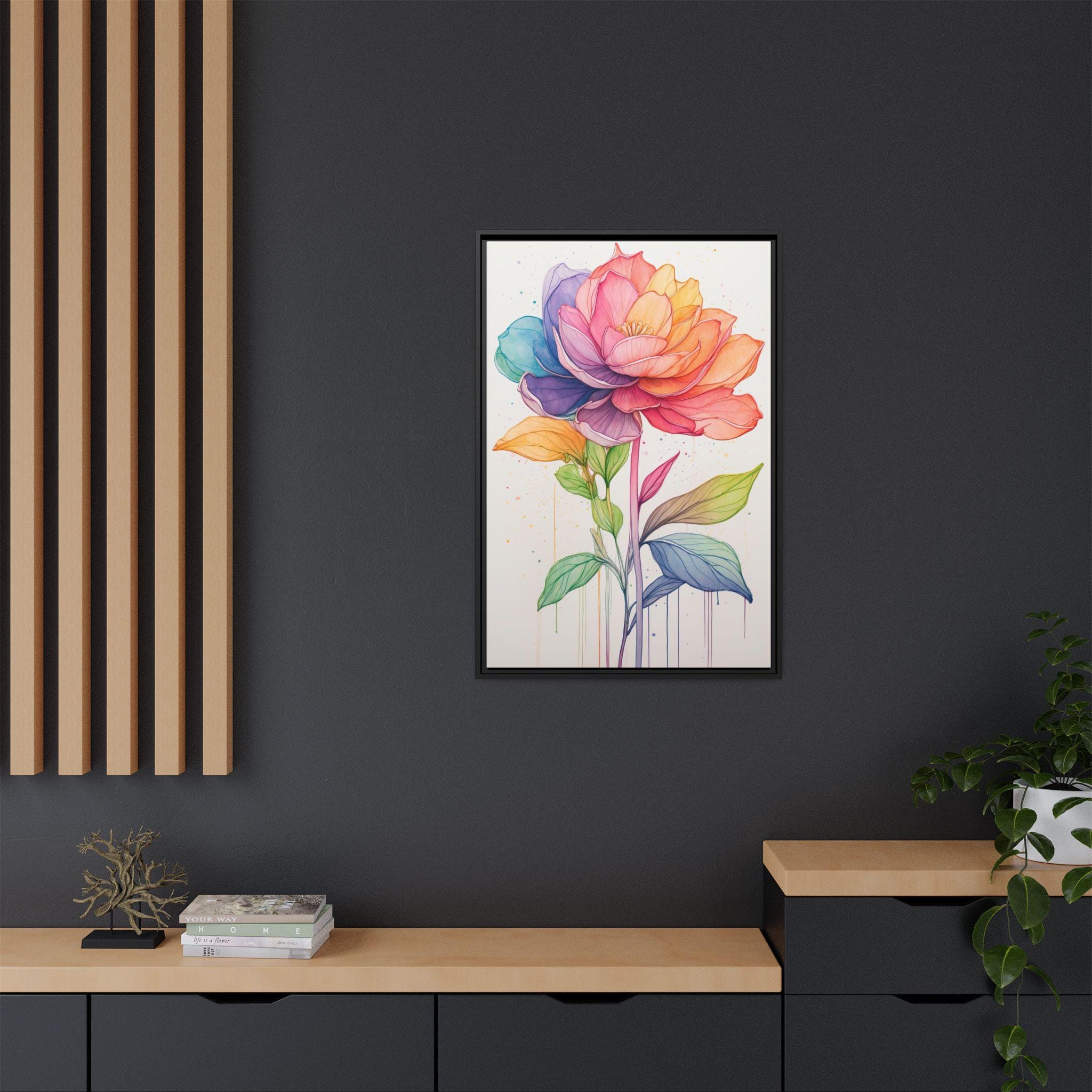 Perfect for living rooms, bedrooms, or creative workspaces, this canvas print adds a lively yet refined focal point to any interior. Its colorful palette and minimalist style make it a versatile piece, bringing energy and elegance to contemporary or eclectic décor.