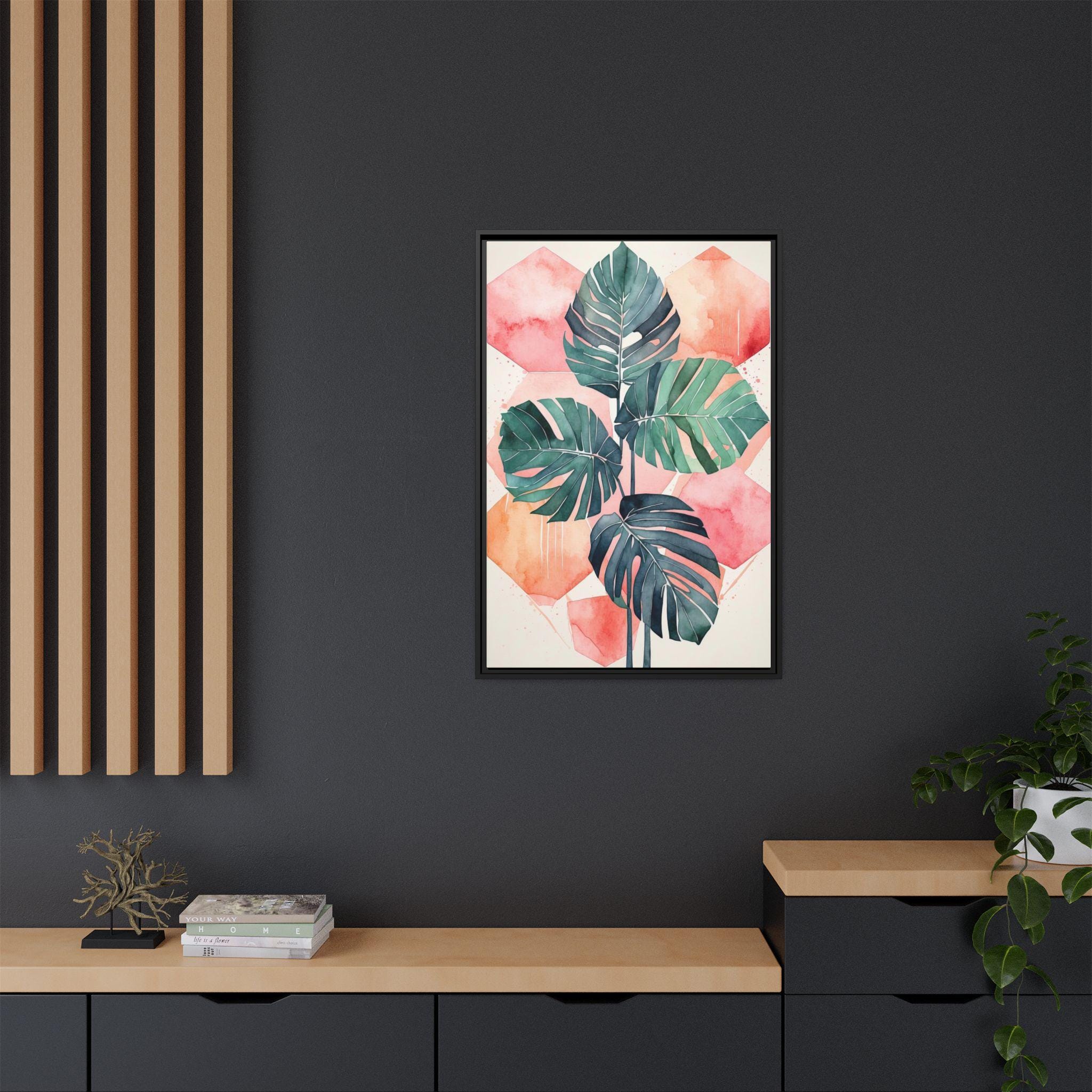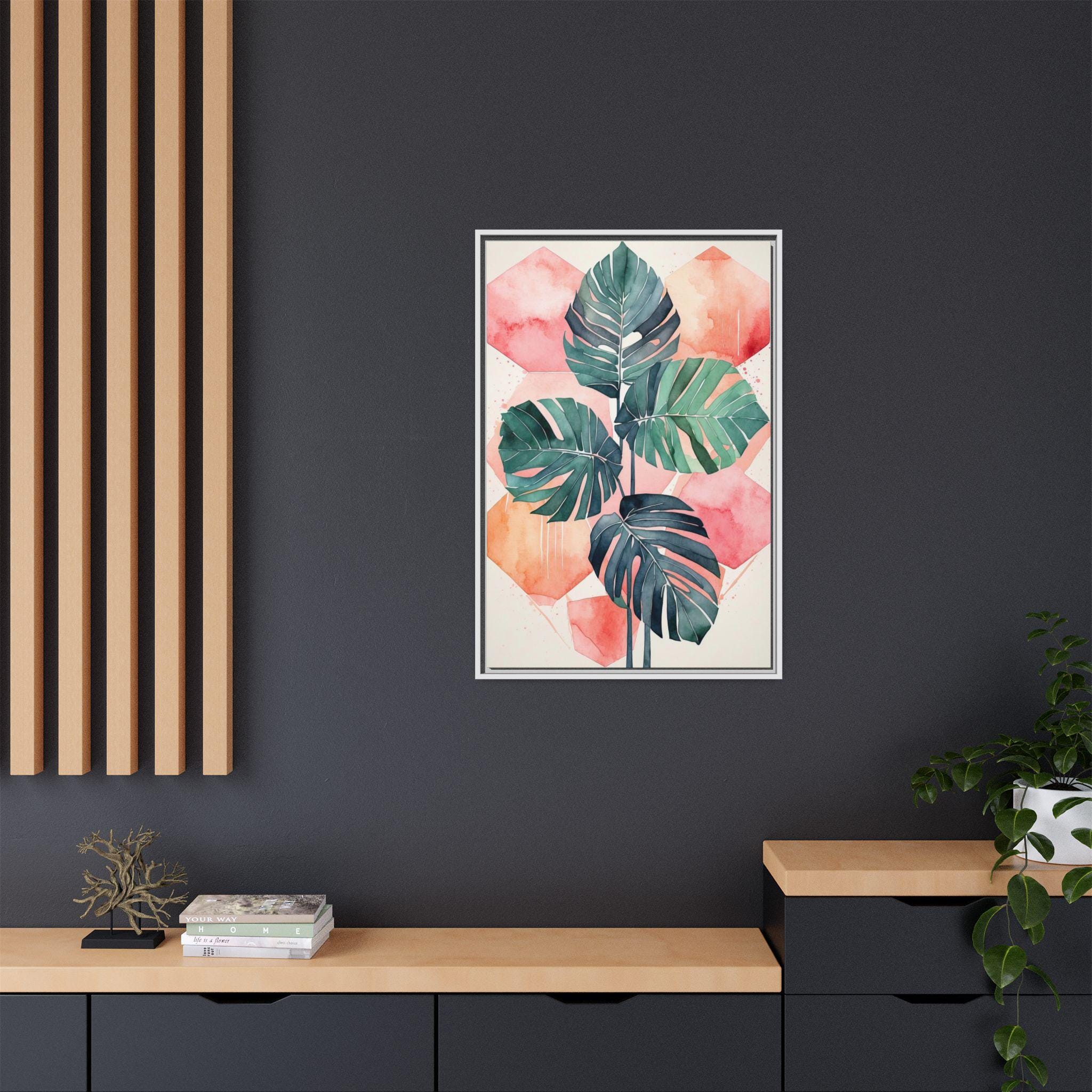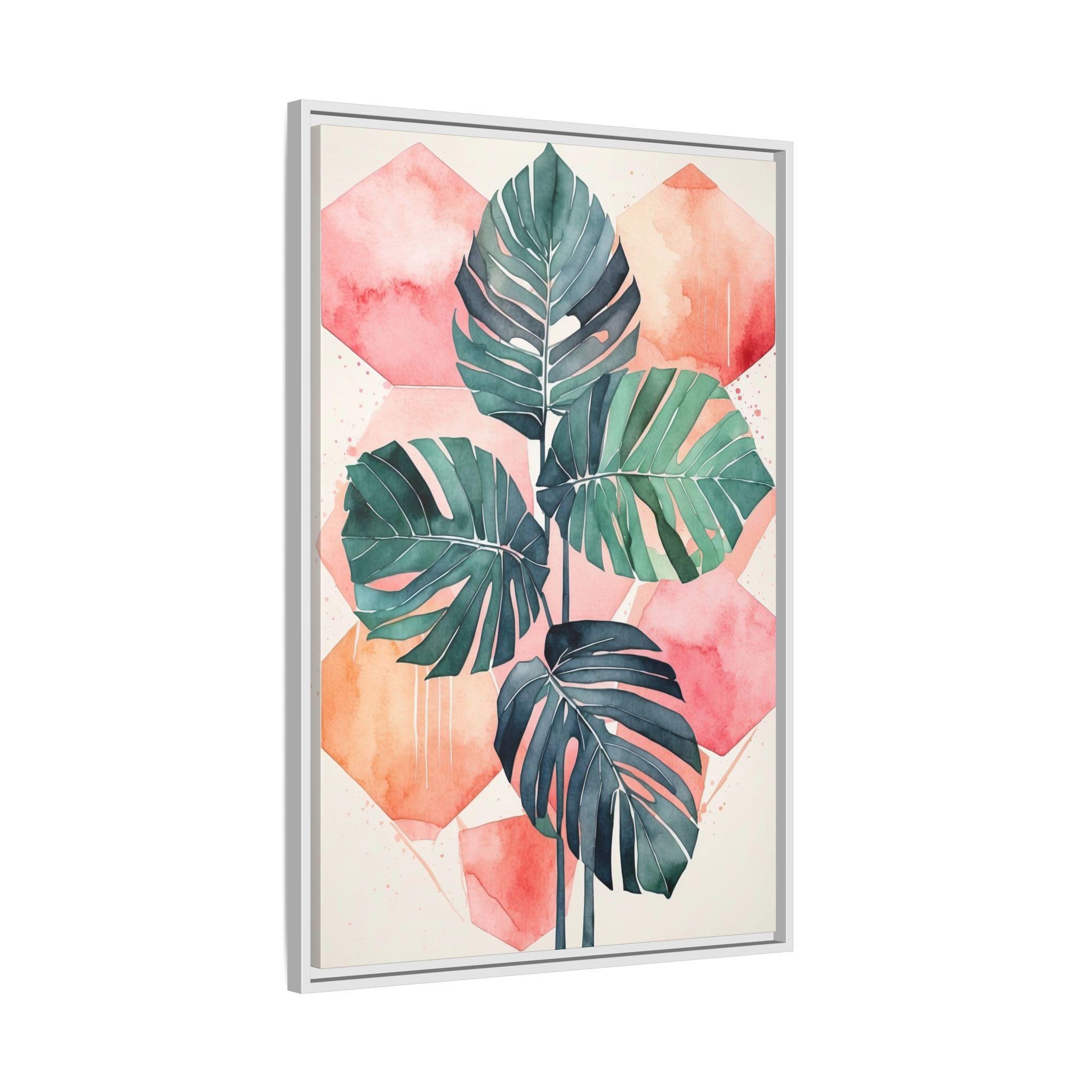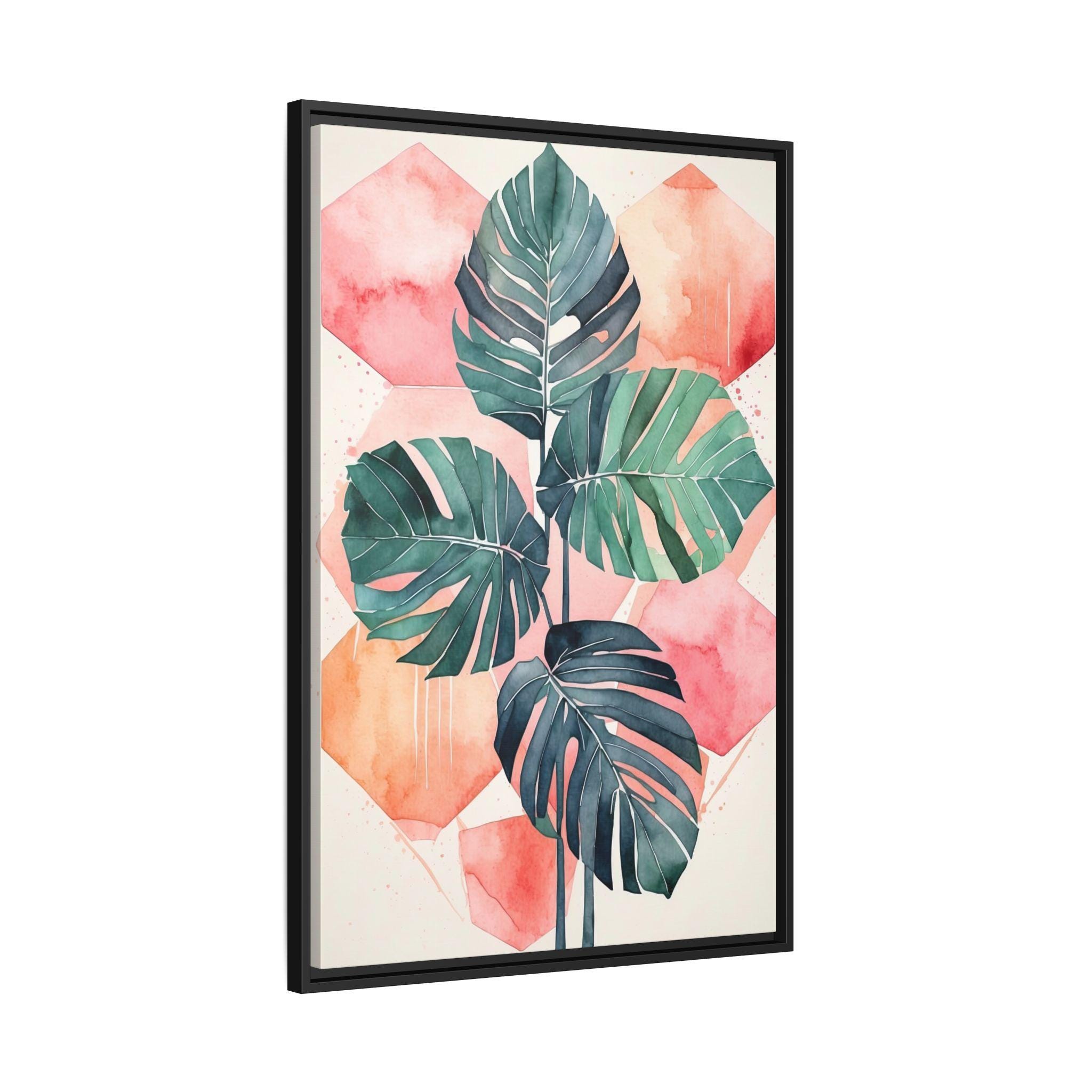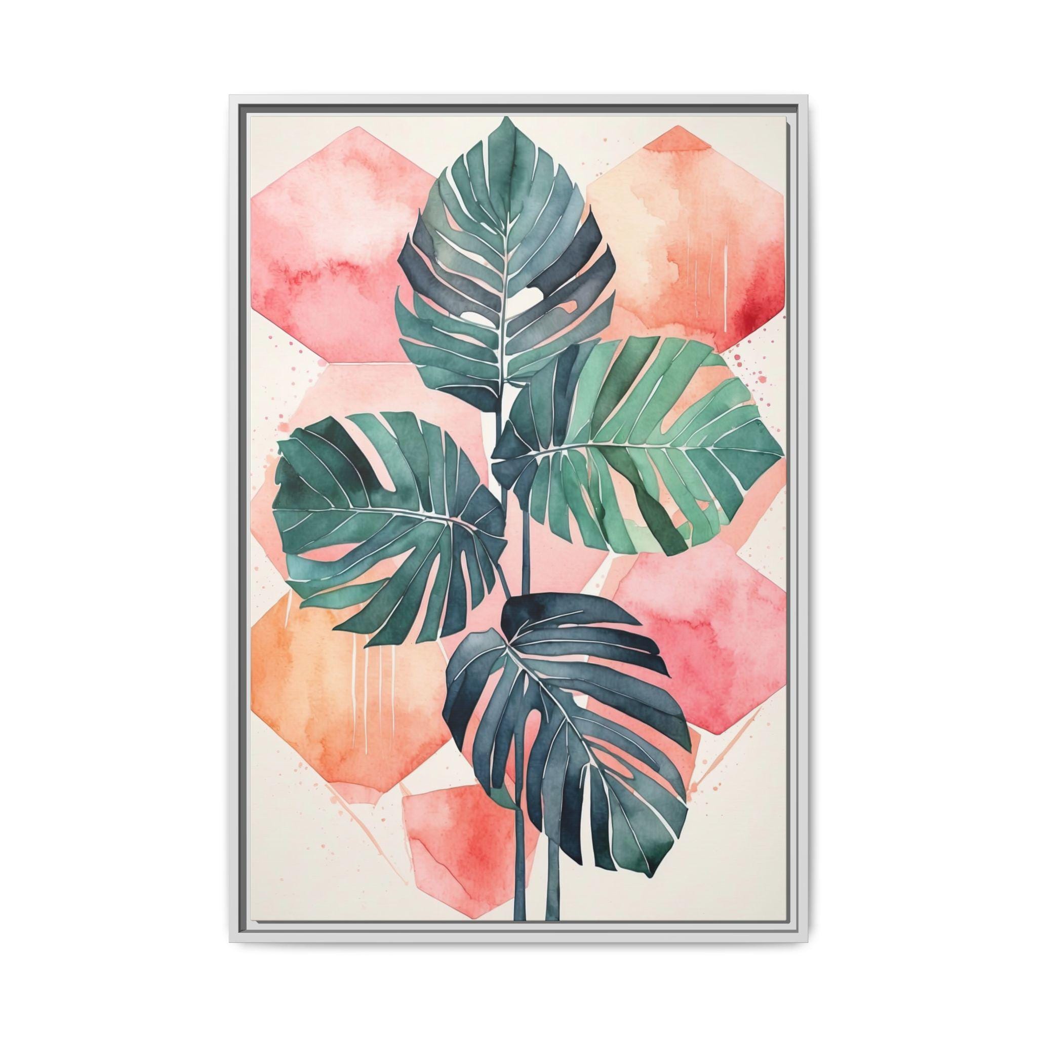 "Pastel Palm Grid" showcases repeated palm leaf silhouettes layered within soft pastel watercolor hexagons. The minimalist geometric design creates a harmonious and modern botanical composition that is both calming and visually captivating.
