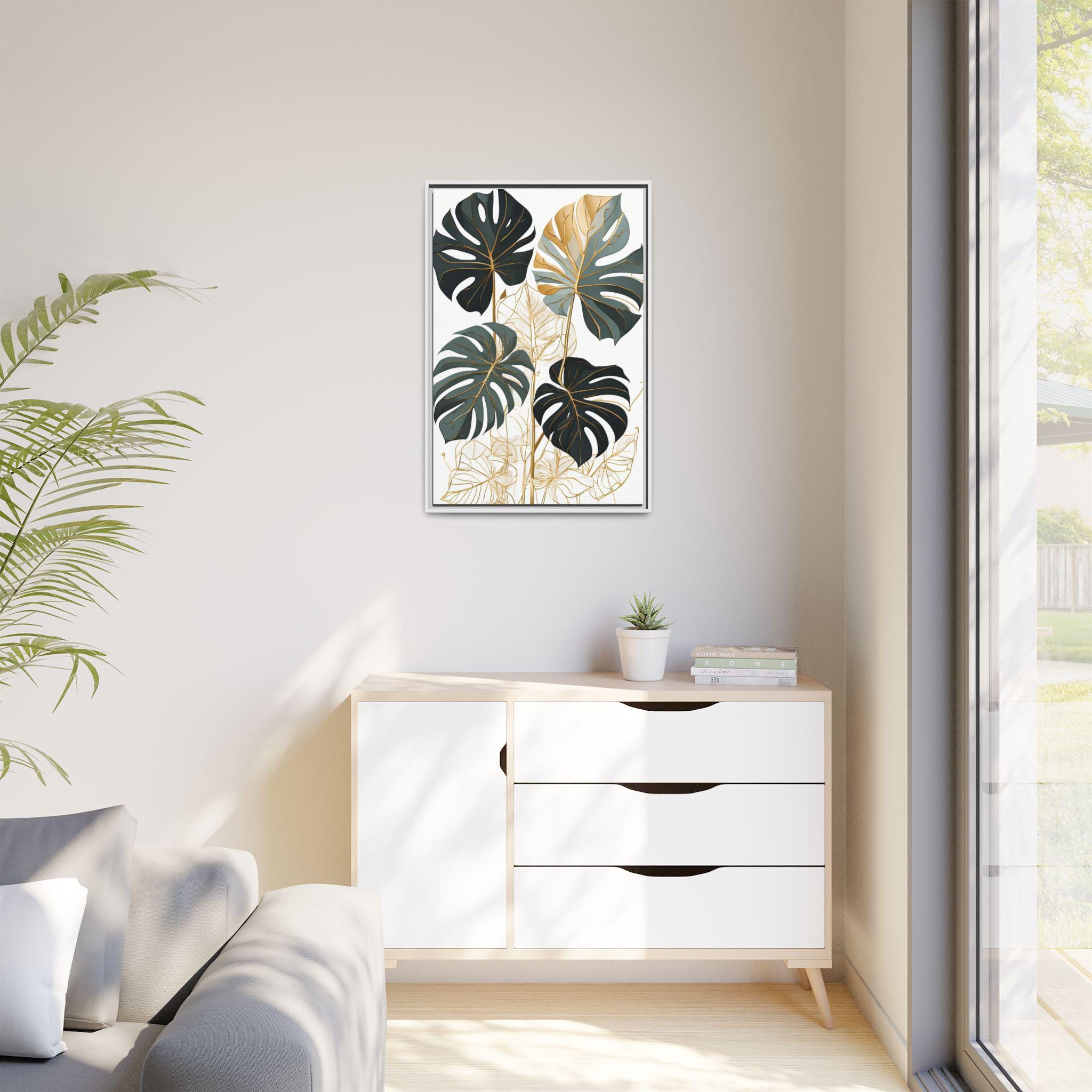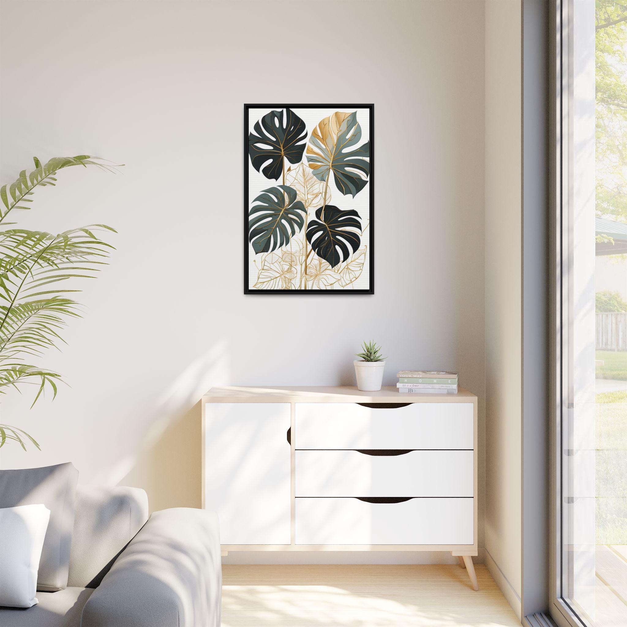Perfect for living rooms, bedrooms, or office environments, this canvas print brings a stylish, calming focal point to modern interiors. Its minimalist design and neutral tones with gold accents make it versatile for contemporary, Scandinavian, or minimalist décor, elevating the atmosphere with botanical elegance.