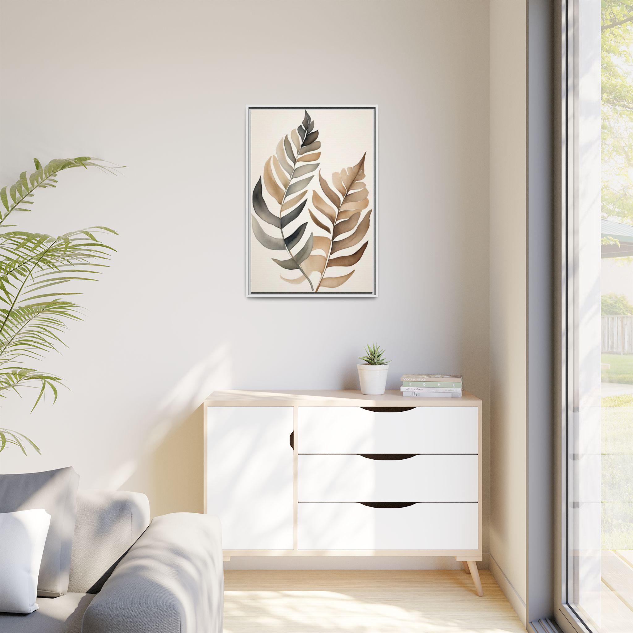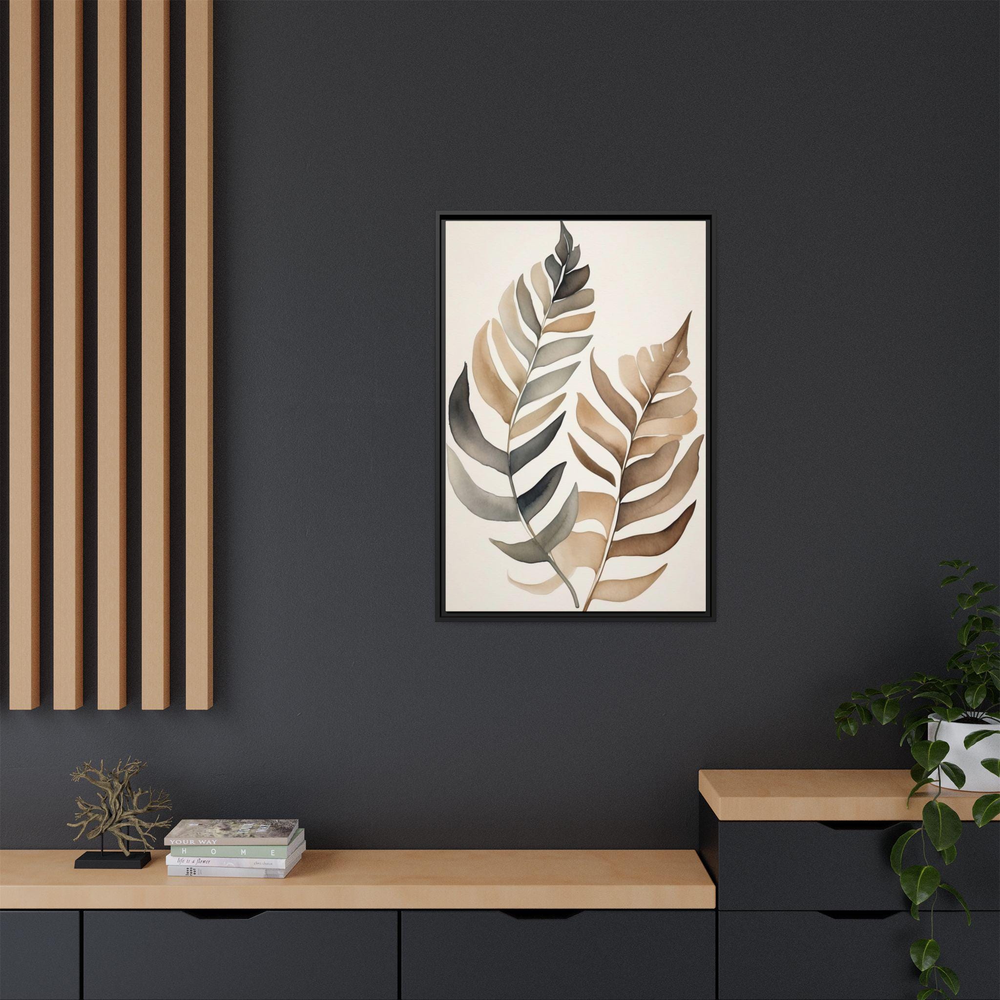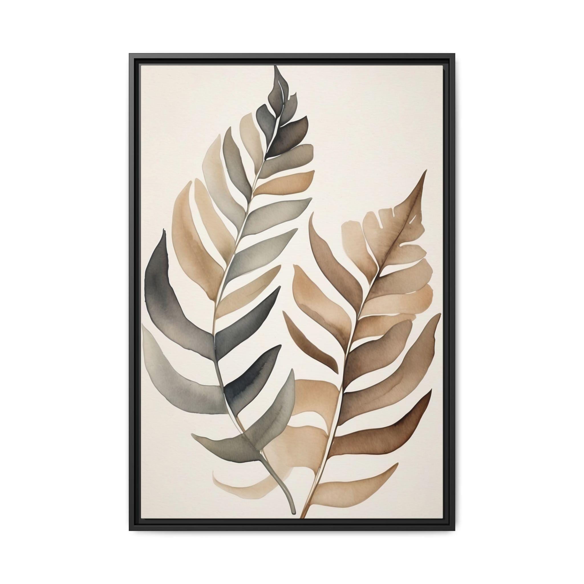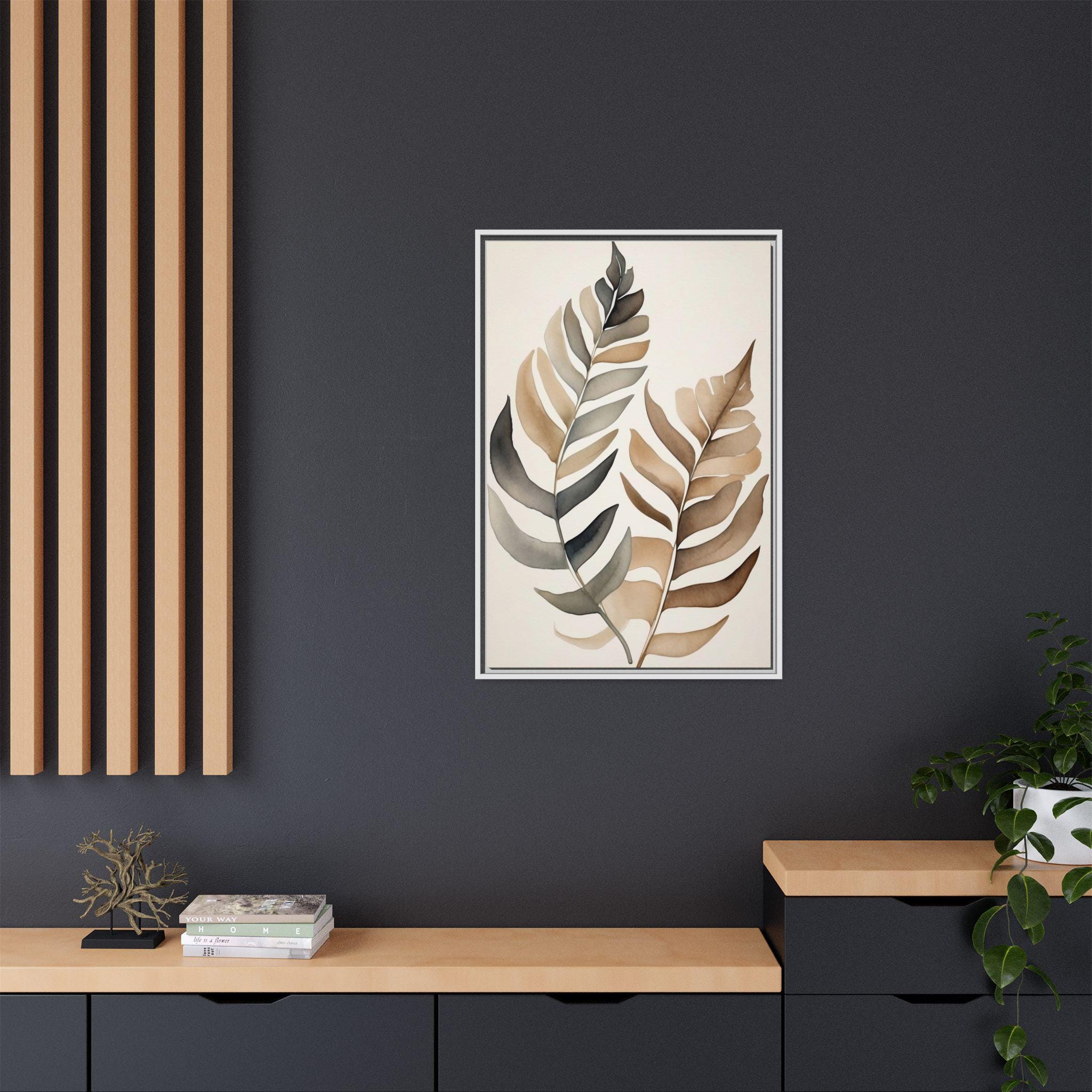 Bring gentle movement and natural elegance into your home with “Spinal Ferns”, a modern botanical canvas print featuring wave-shaped watercolor forms in neutral tones accented by delicate fern leaf outlines. Its minimalist composition and soft palette create a calming, refined aesthetic perfect for contemporary interiors.