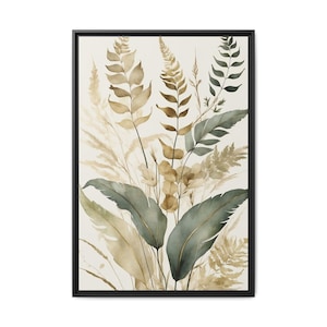 "Celestial Leaves" fuses the mystery of the cosmos with the elegance of nature. Silhouetted botanical forms float against a watercolor galaxy background in deep purples, blues, and greens, creating a mesmerizing, ethereal composition that feels both otherworldly and organic.