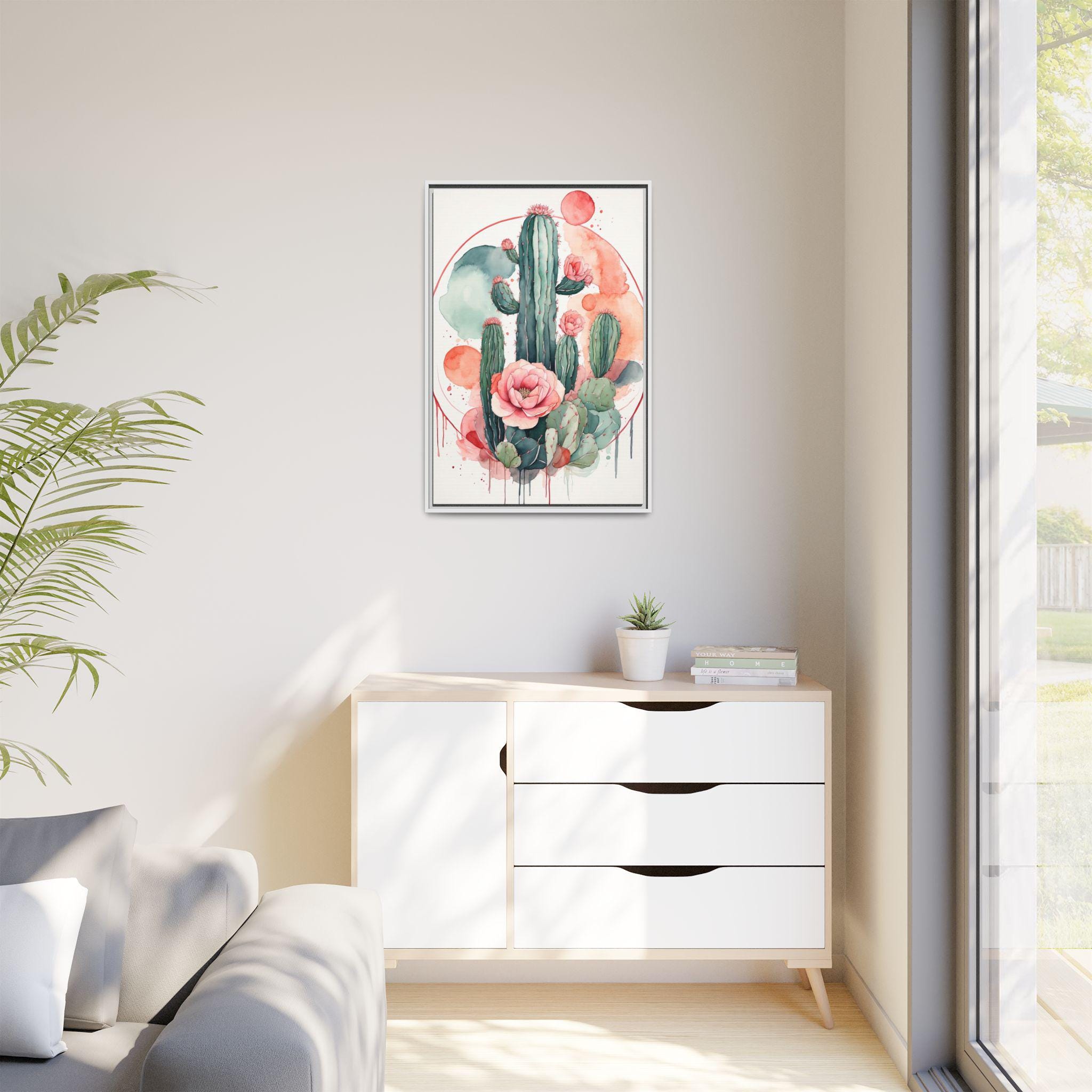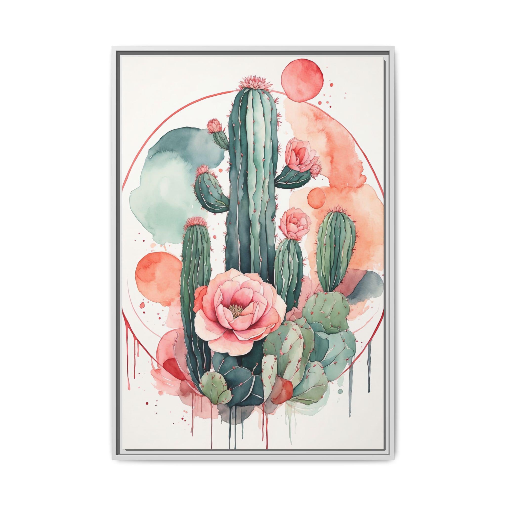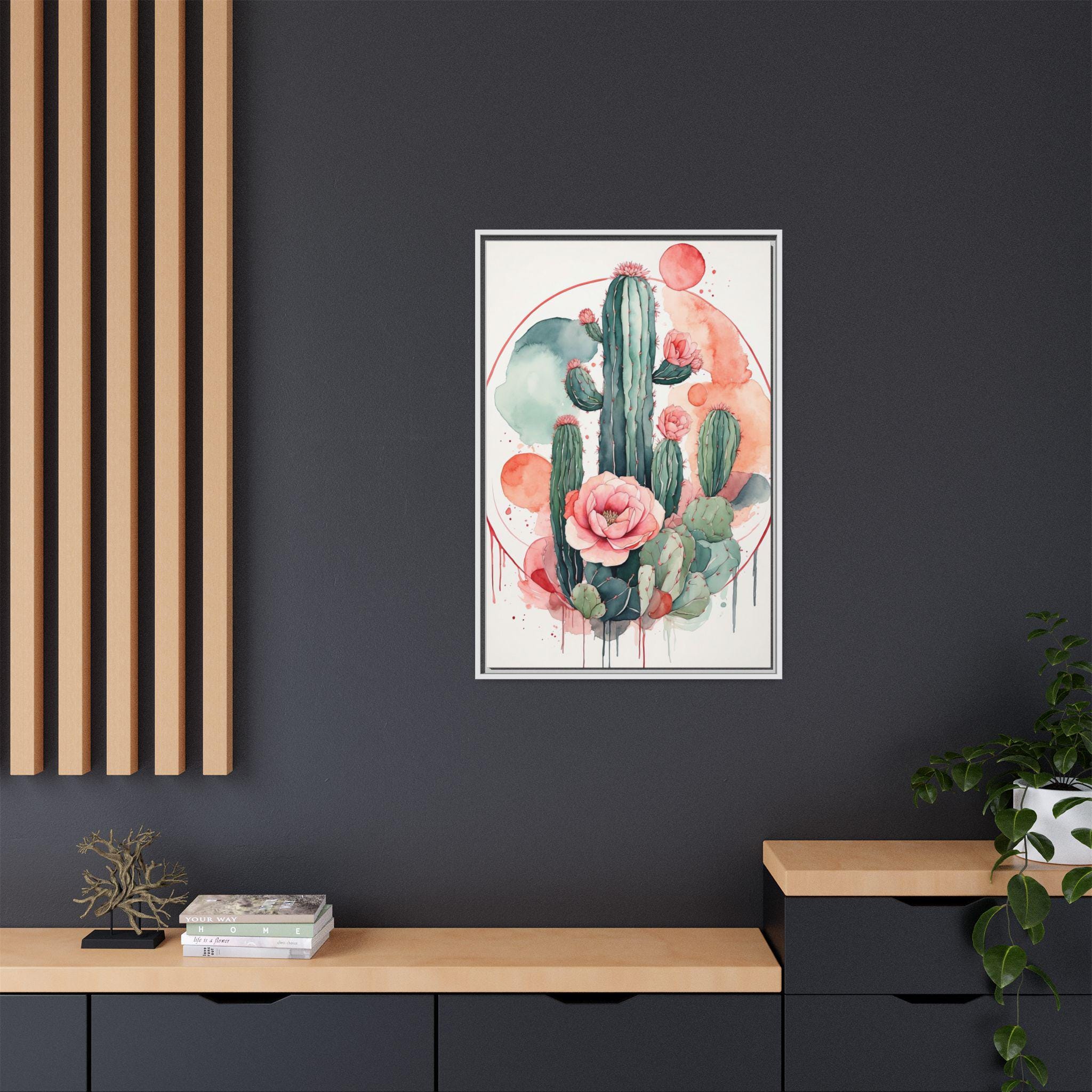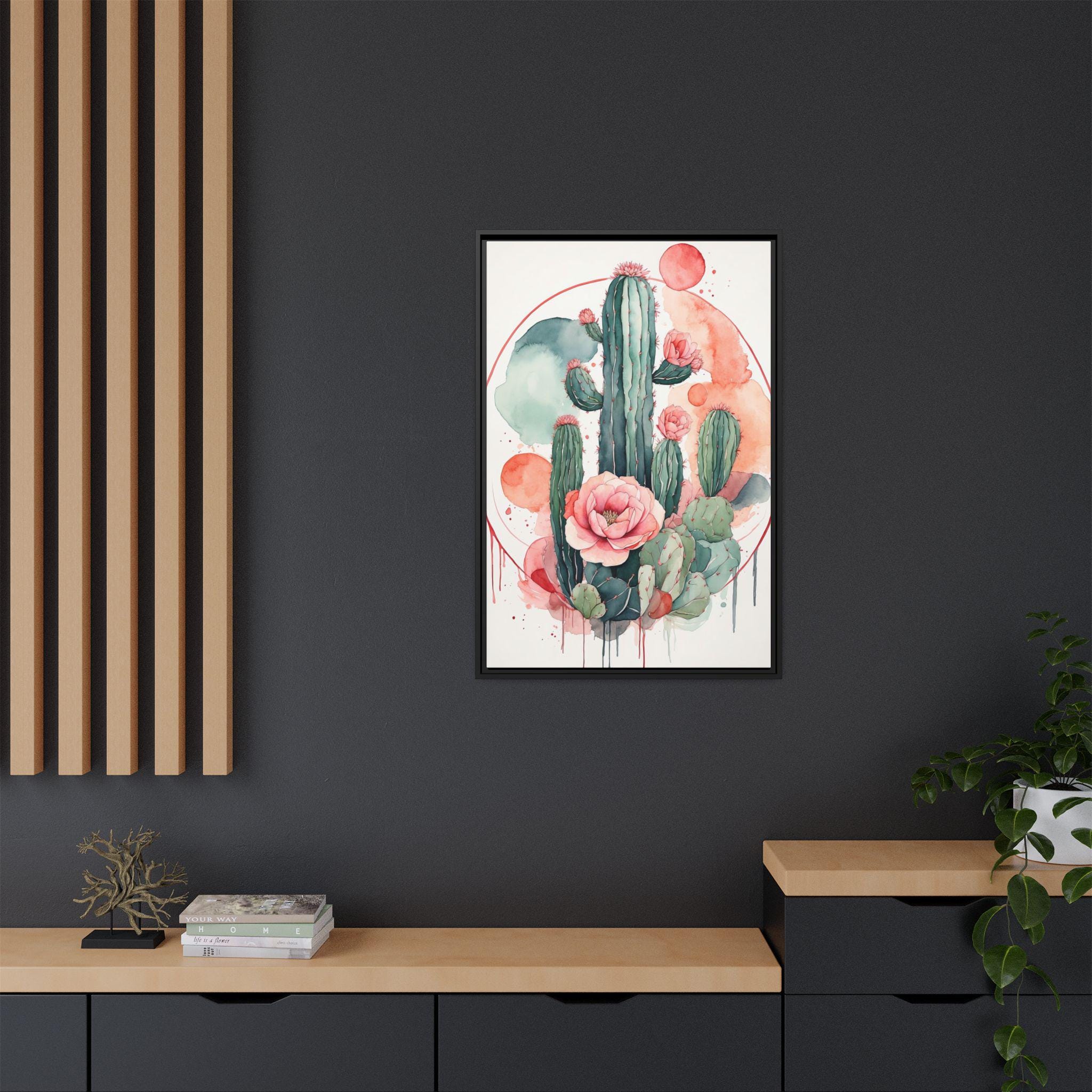 Discover quiet desert elegance with “Echoes of the Desert”, a modern botanical canvas print featuring a refined cactus outline paired with soft circular watercolor pastels in muted tones. The minimalist composition blends natural inspiration with contemporary abstraction, offering a piece that feels both calming and artful.