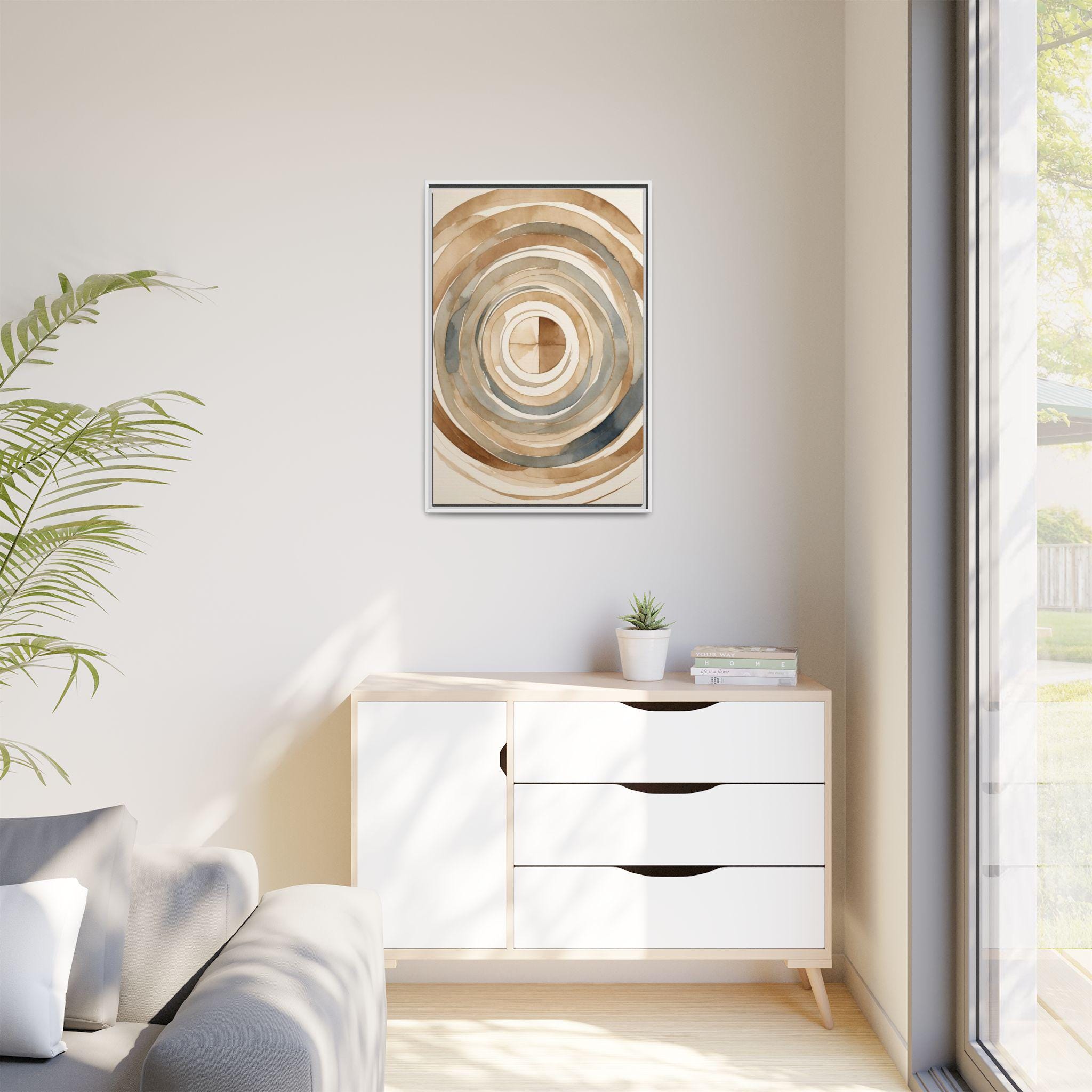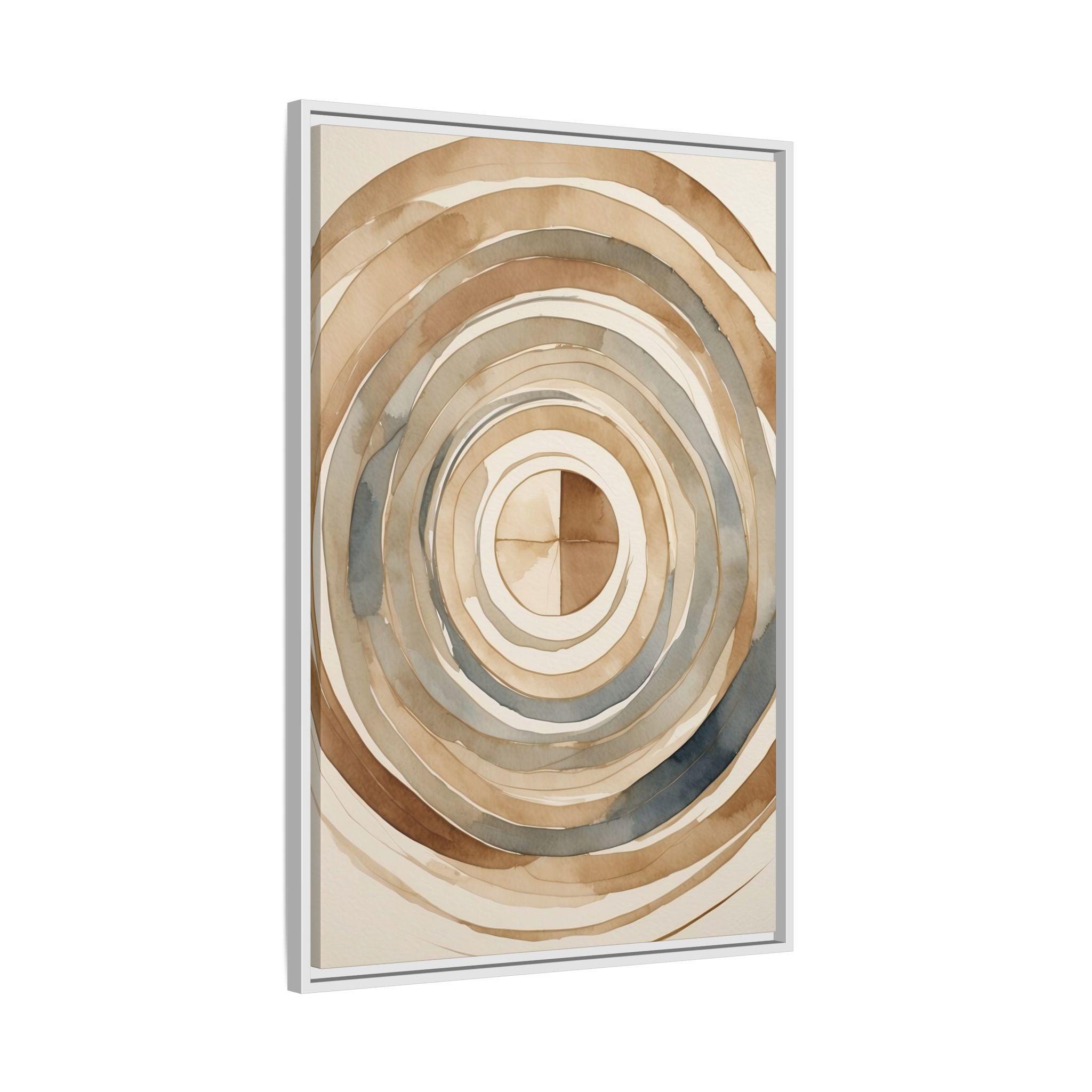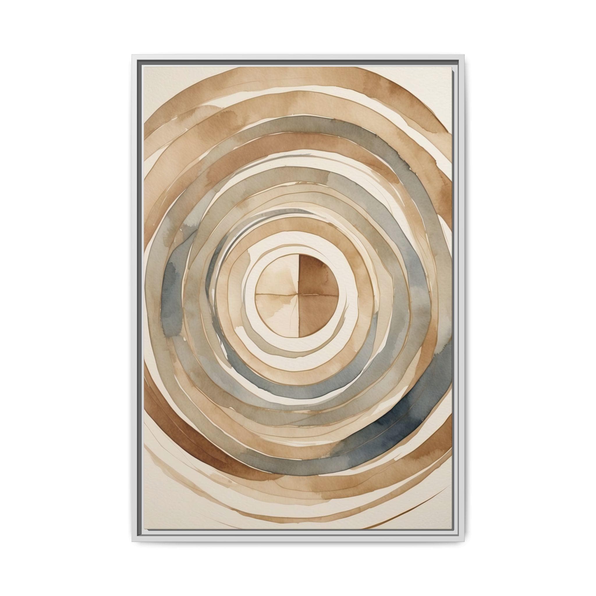Discover a moment of calm with “Sands of Serenity”, a modern botanical canvas print that harmonizes the gentle flow of sandy watercolor concentric circles with delicate eucalyptus sprigs. The muted, natural tones invite a sense of tranquility, making it a perfect addition for modern living spaces, bedrooms, or quiet corners for reflection.