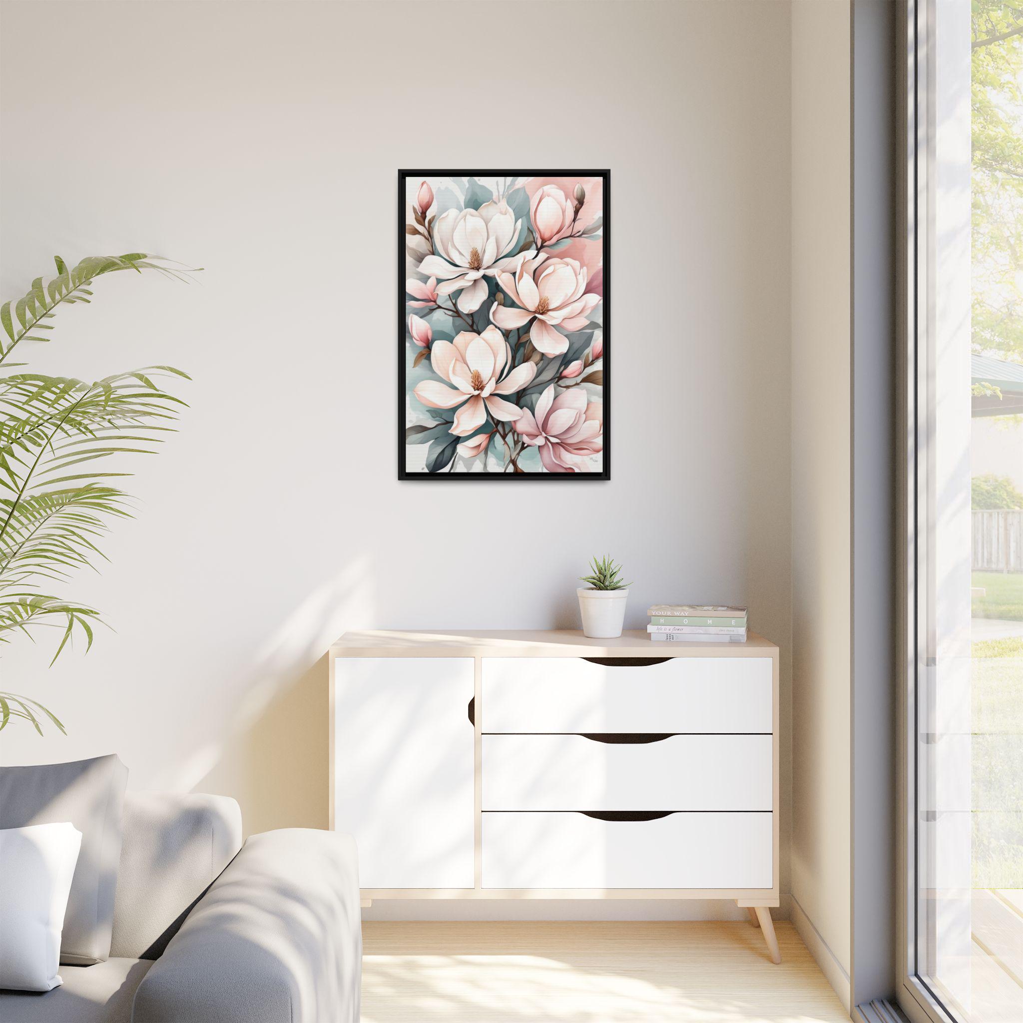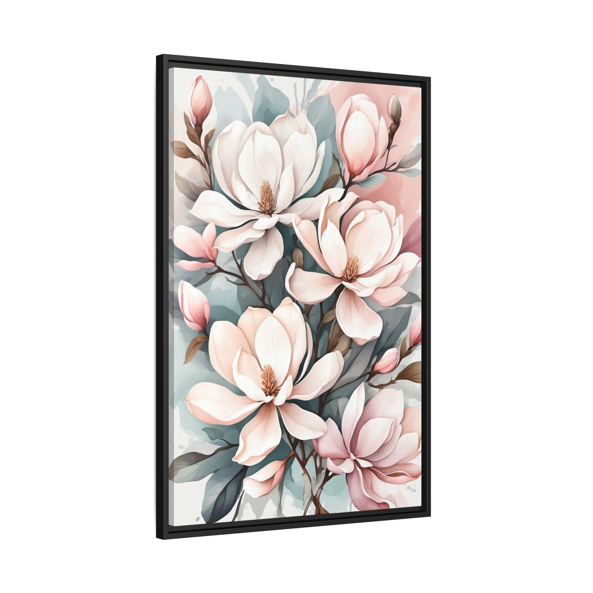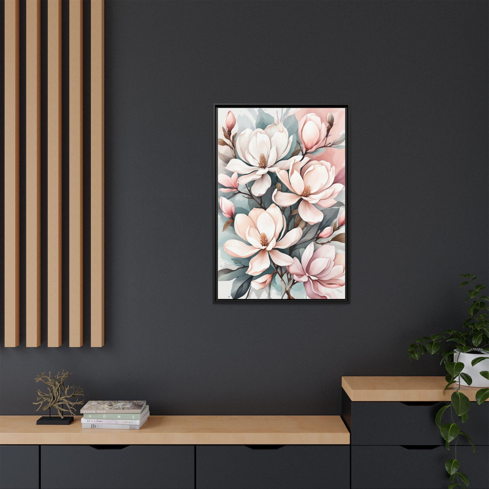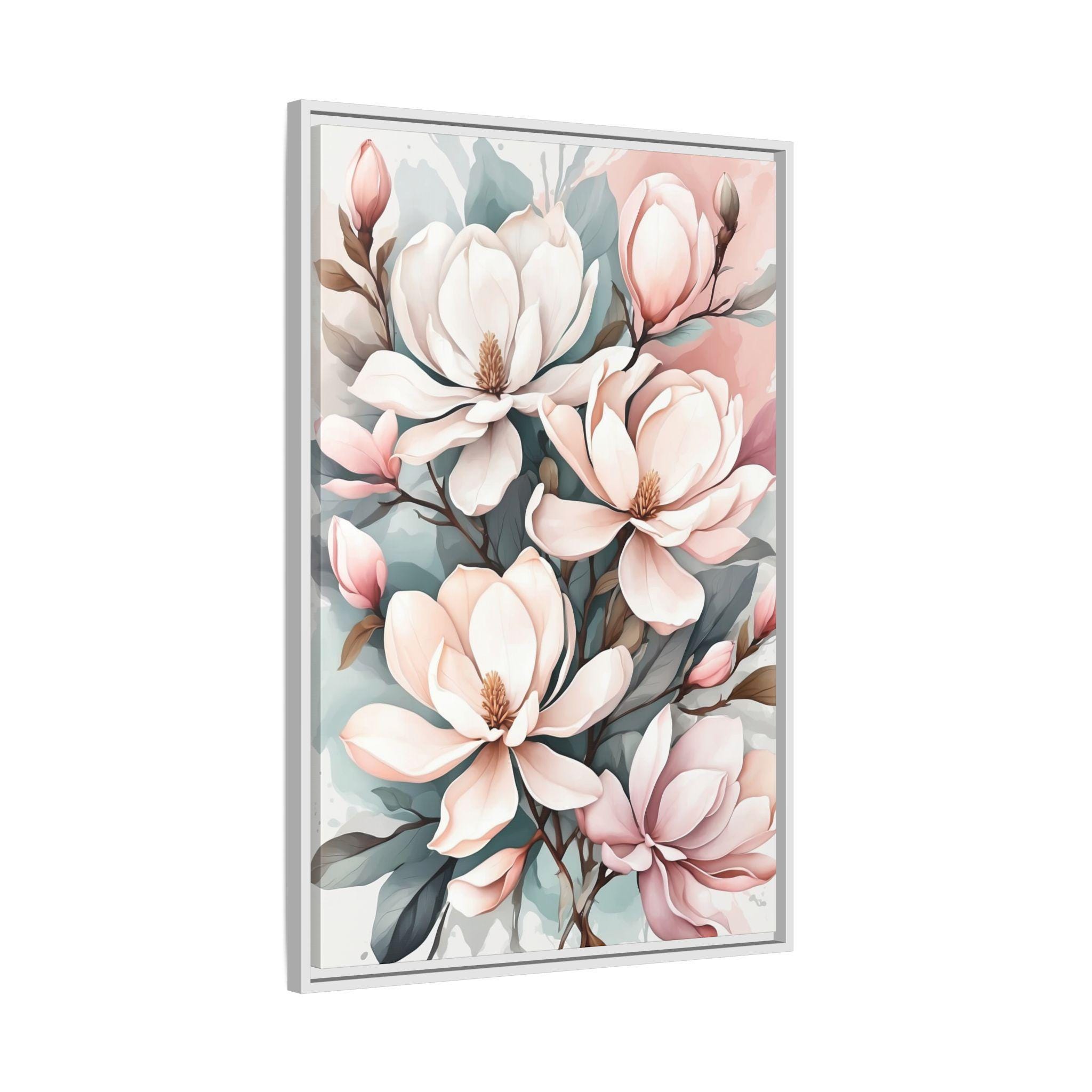 Invite subtle elegance into your home with “Whispering Magnolia”, a modern floral canvas print showcasing soft pastel magnolia blossoms in gentle watercolor against a crisp white background. Its clean, minimal composition embodies serenity and sophistication, perfect for creating a calming focal point in any room.