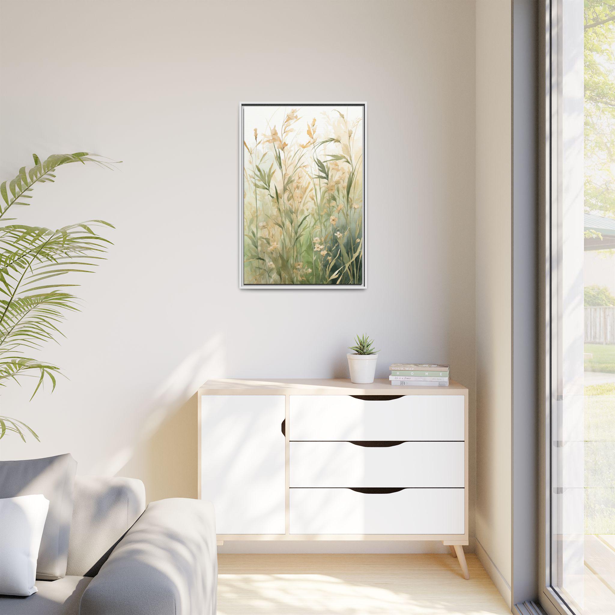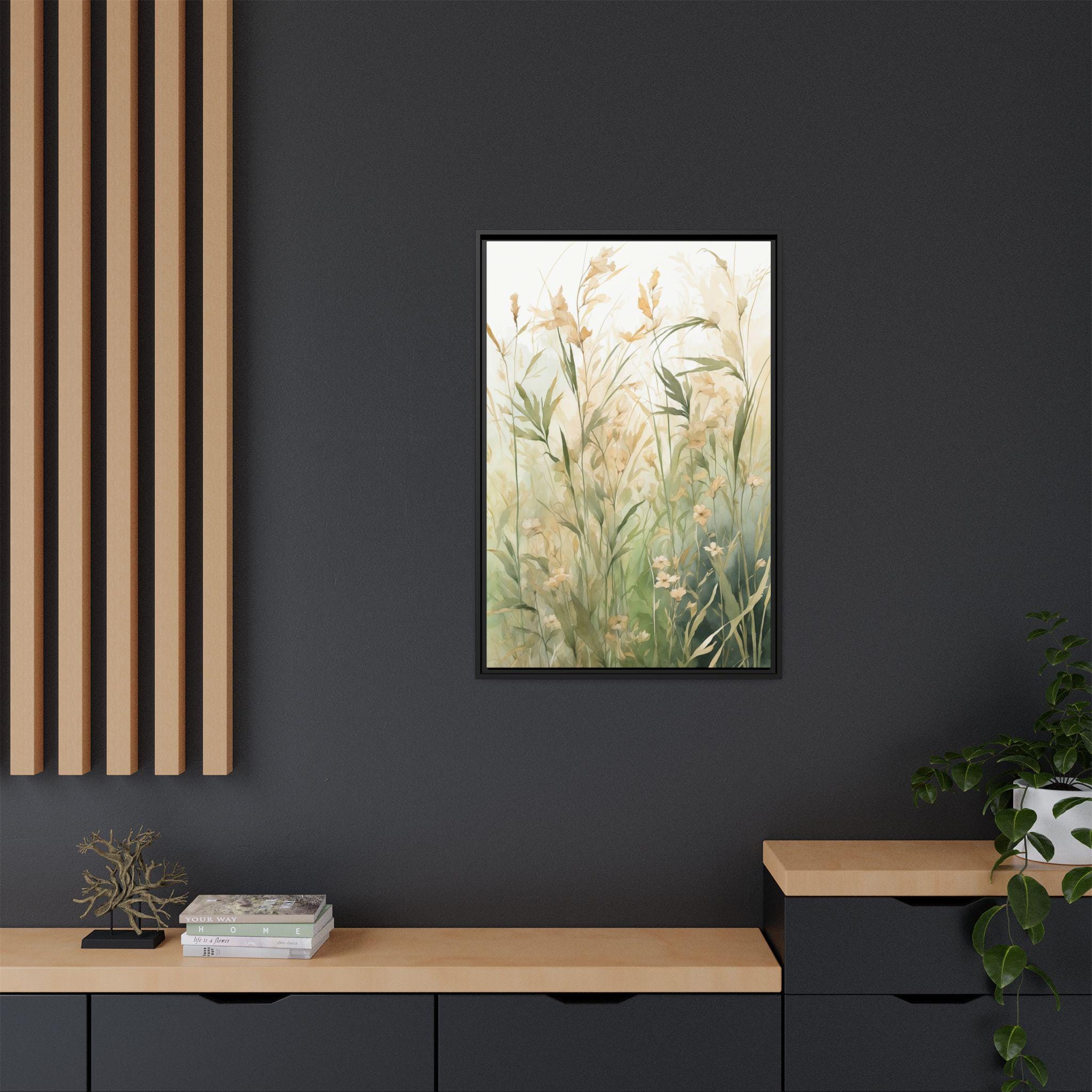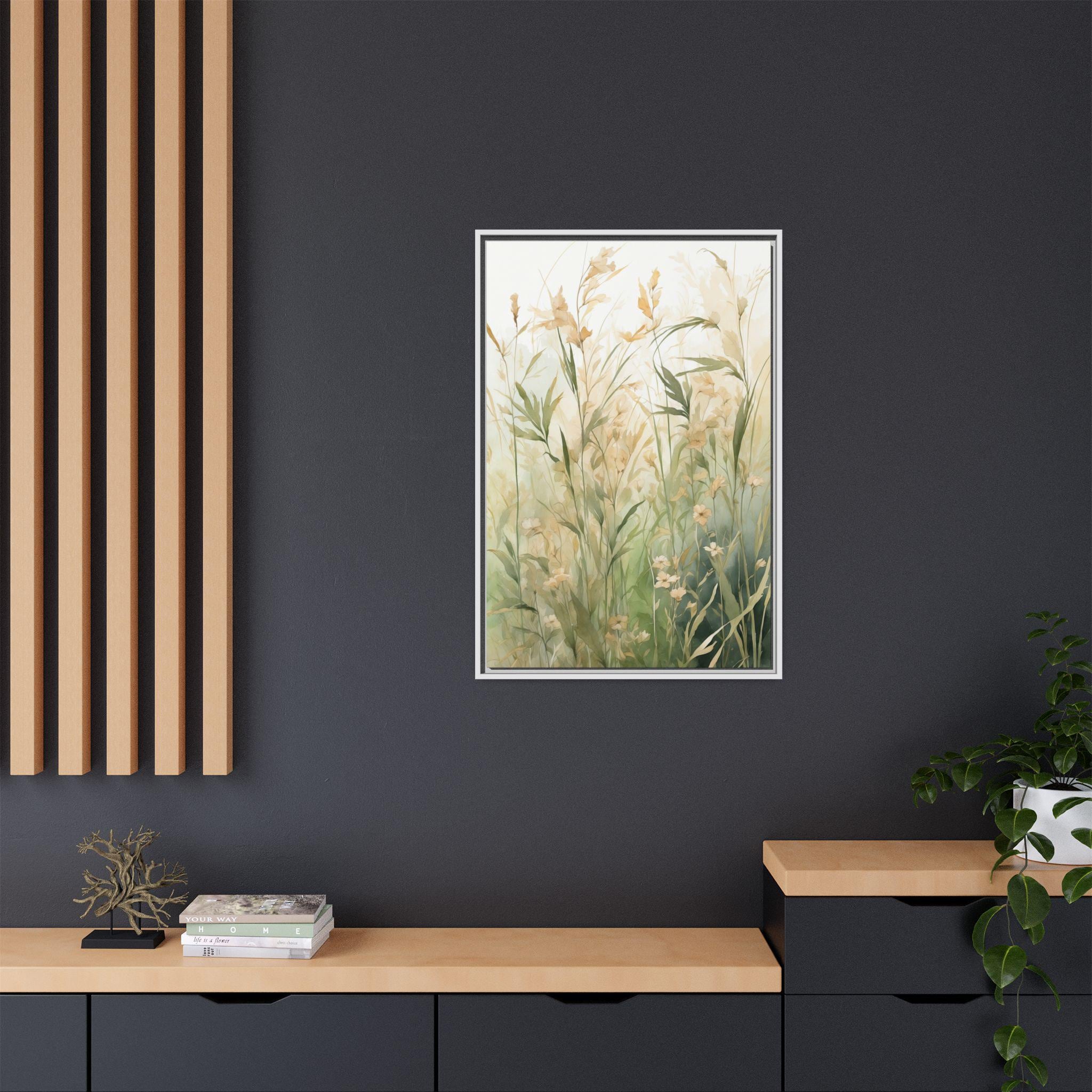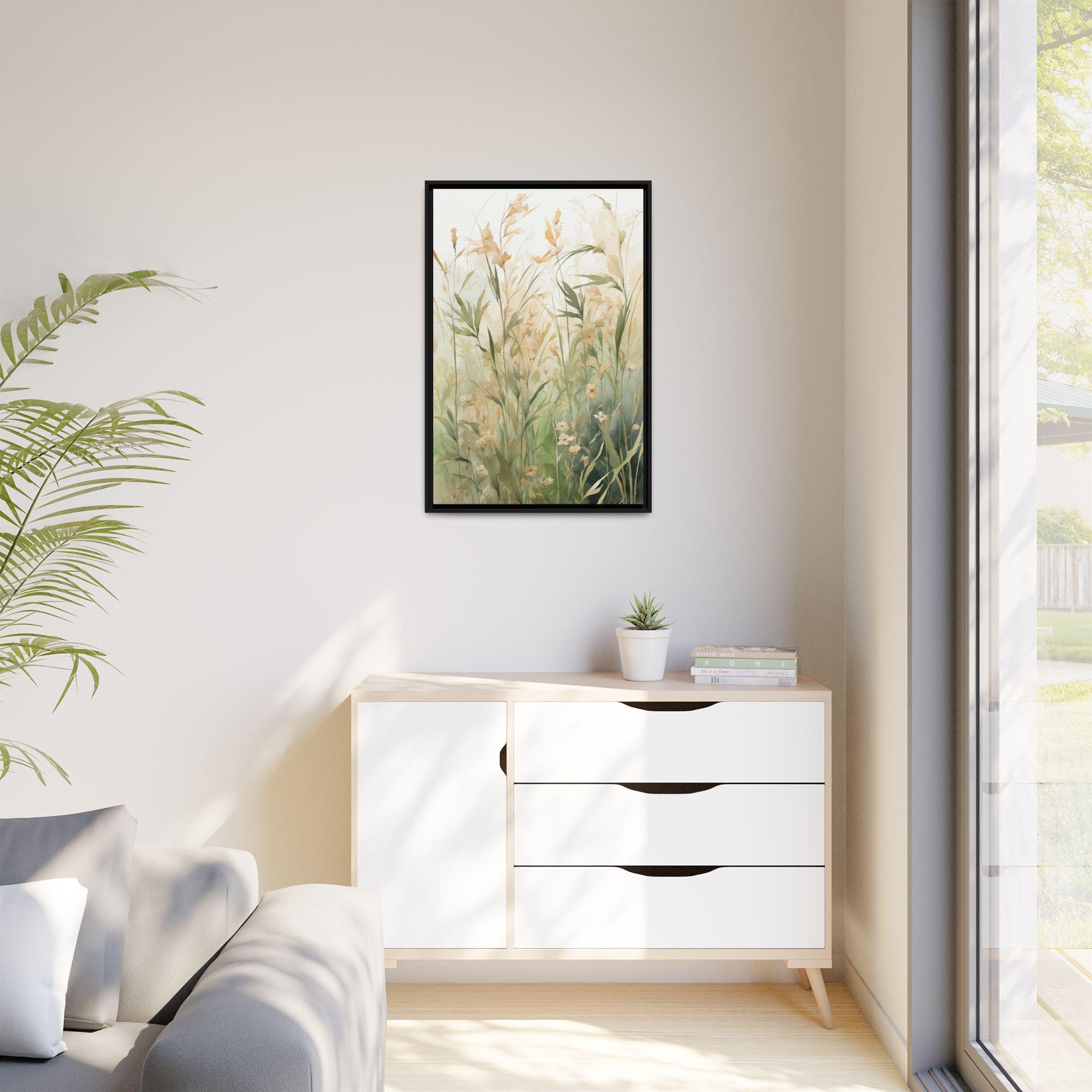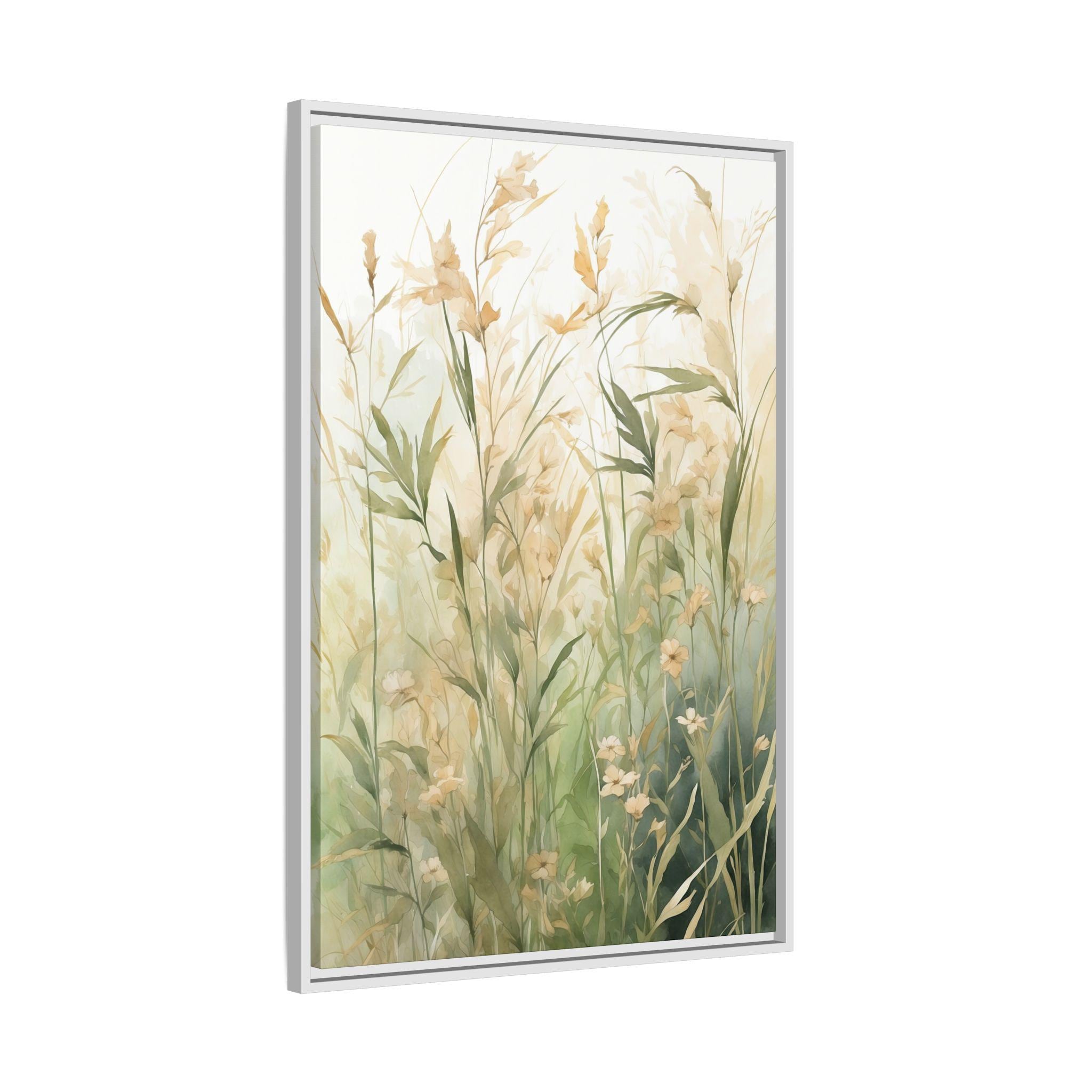 "Meadow Calm" captures the quiet beauty of meadow grasses painted in delicate watercolor strokes. Set against a soft neutral background, this artwork evokes stillness and serenity, celebrating the subtle details of nature in a refined, modern way.