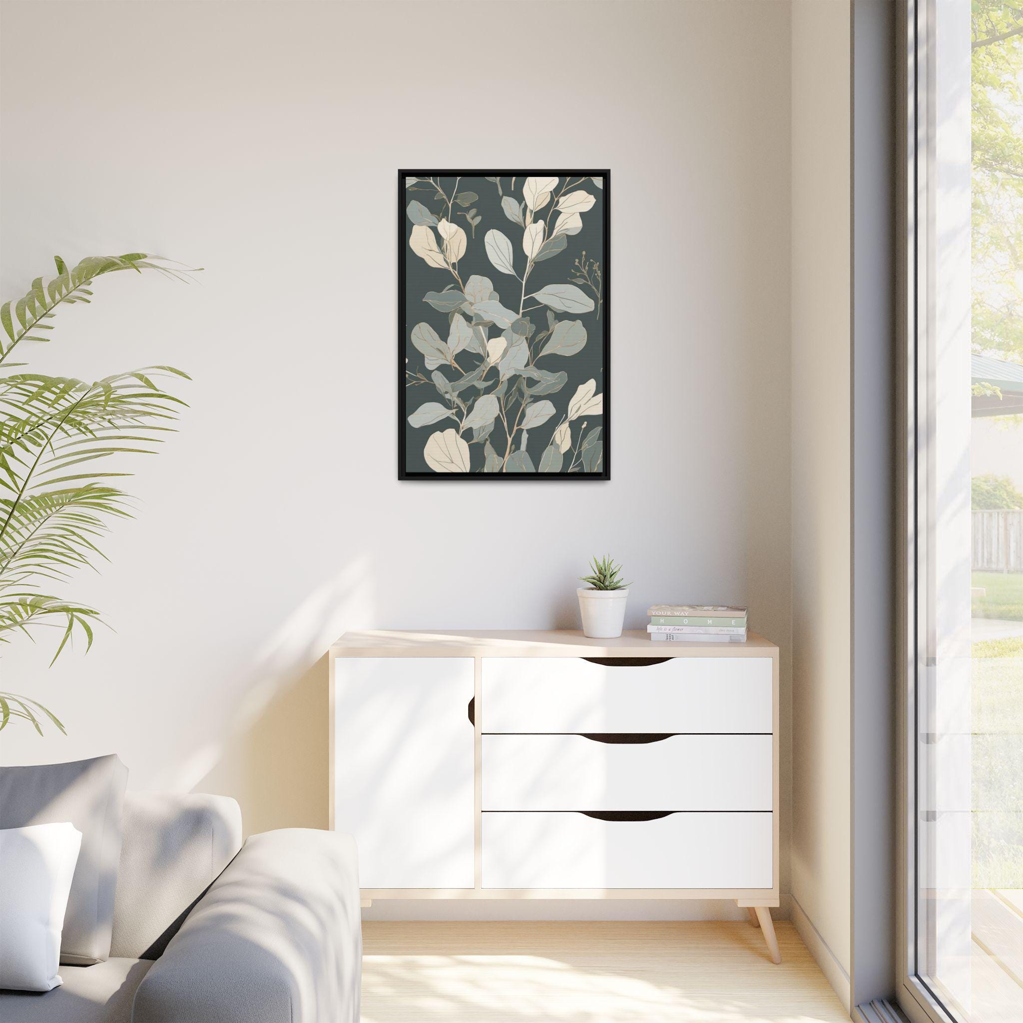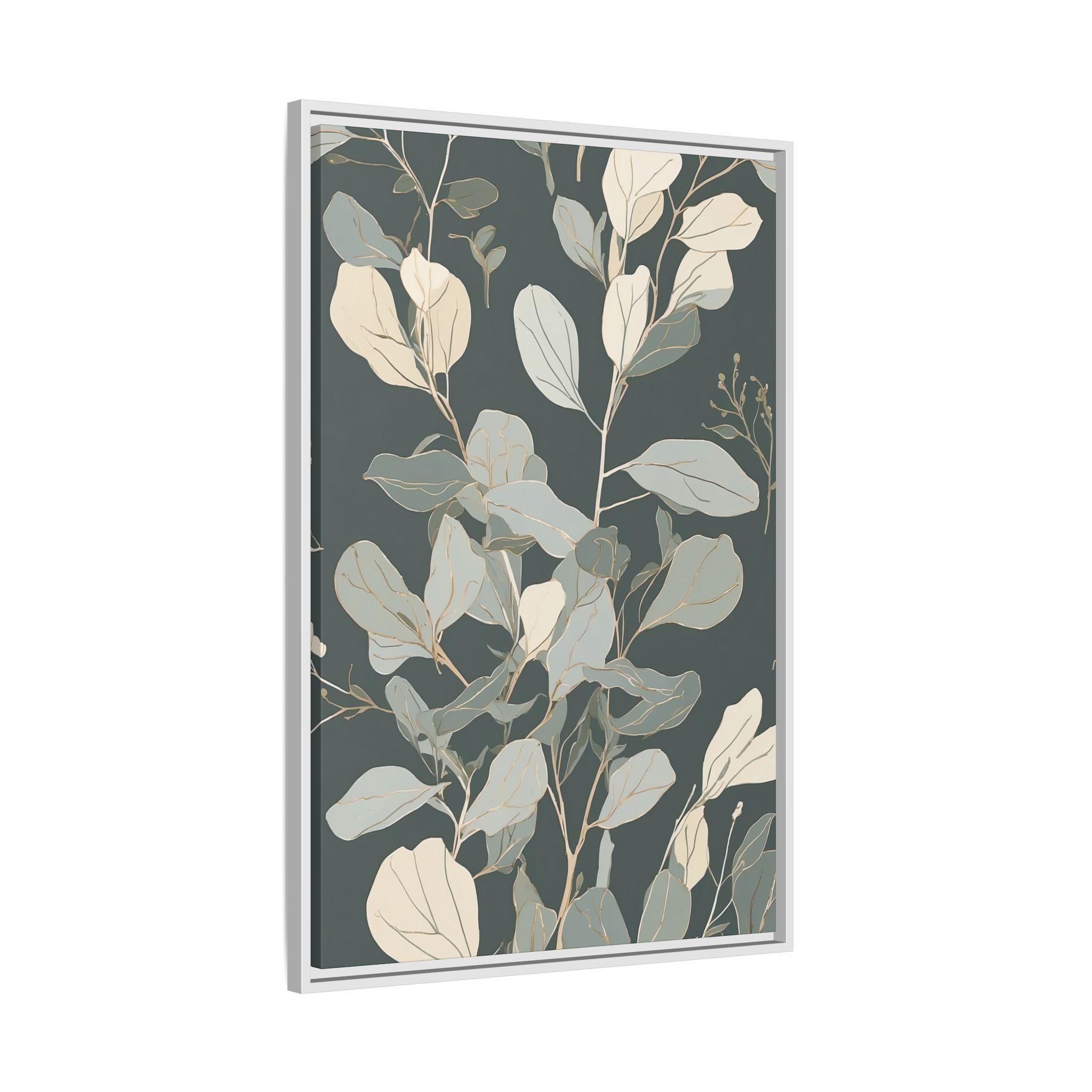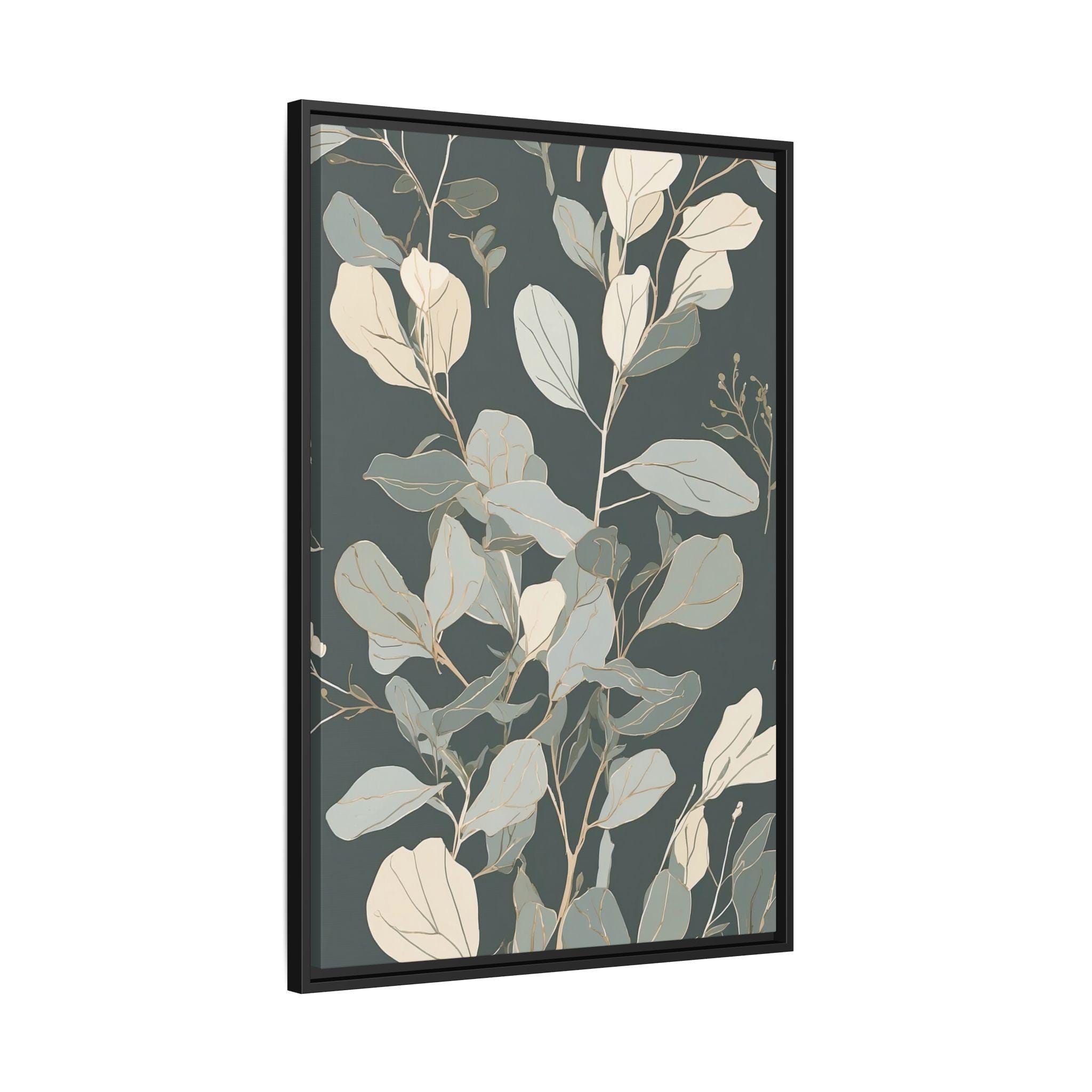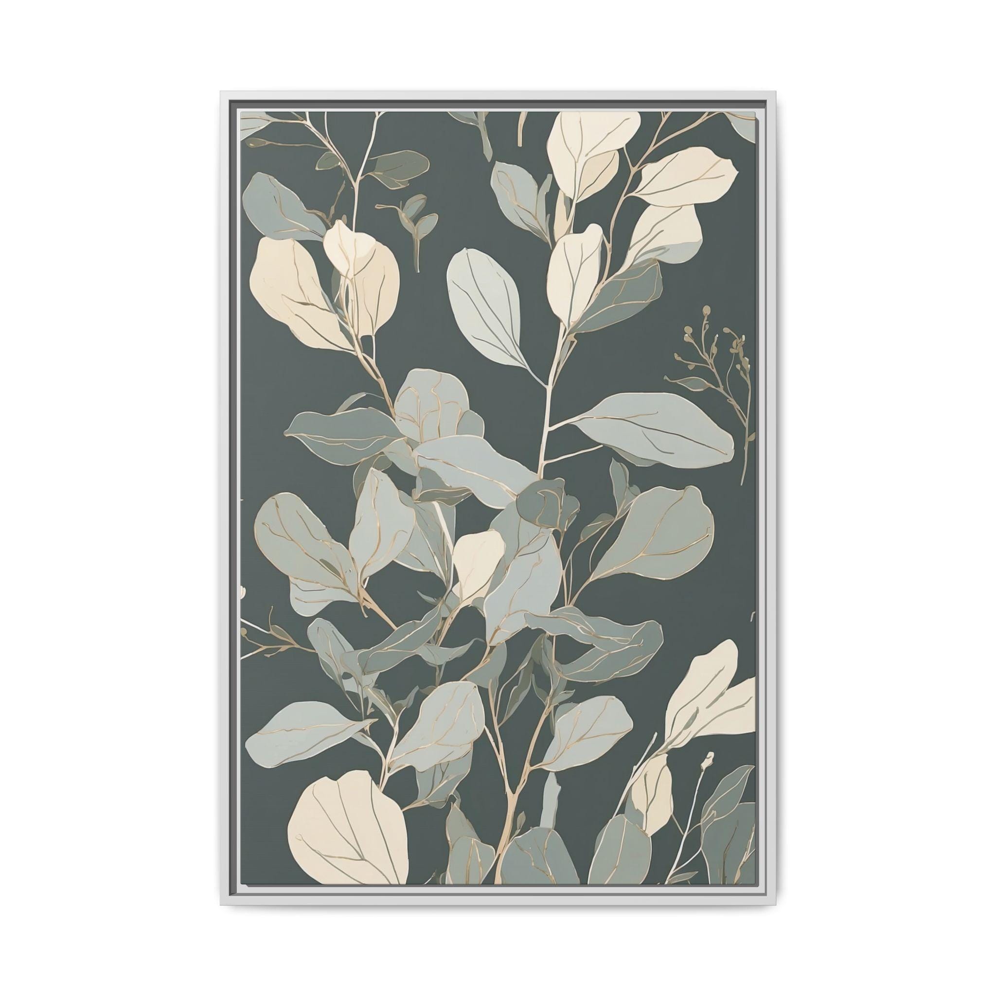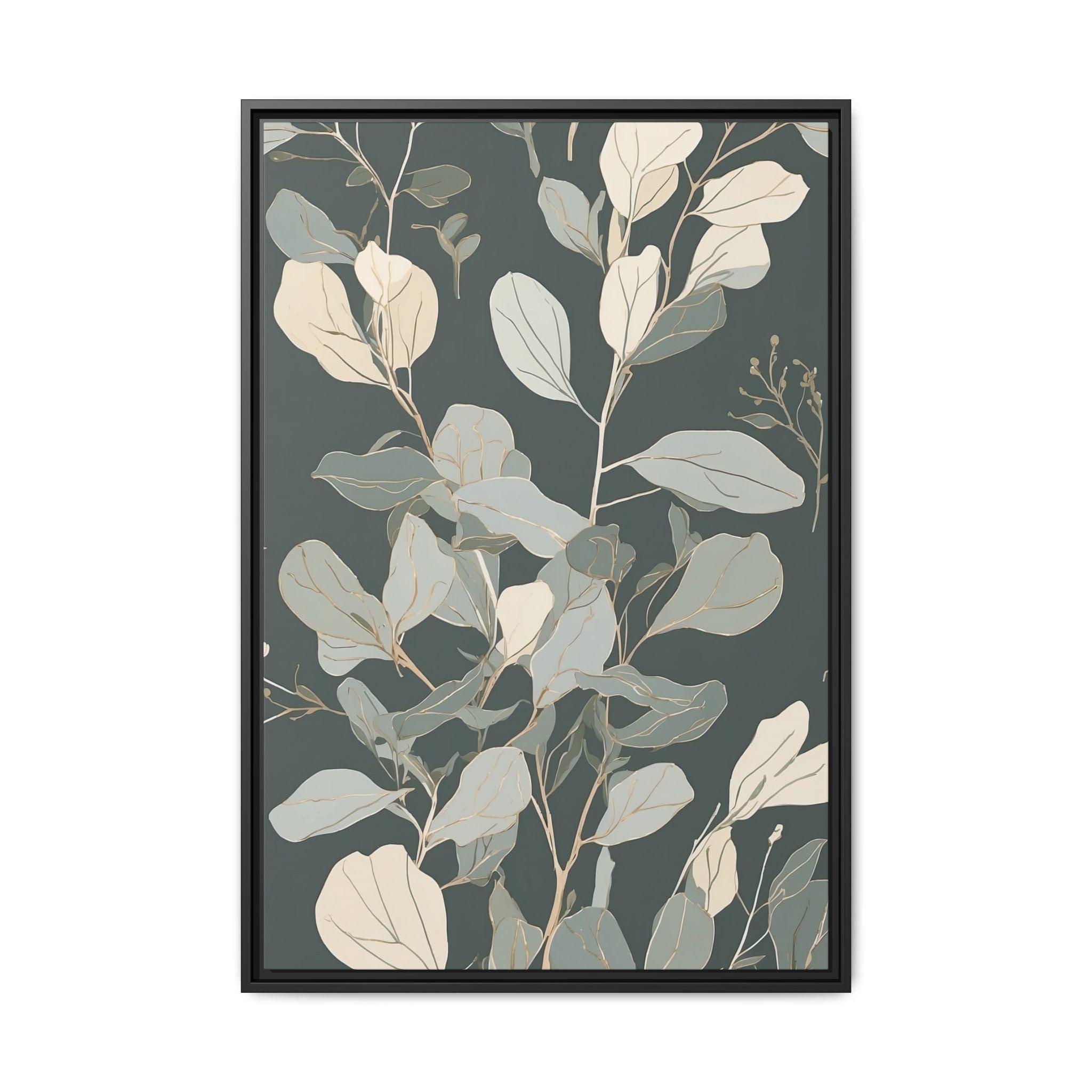 "Serene Eucalyptus" features a delicate eucalyptus branch outlined in muted sage and cream, with subtle watercolor washes enhancing its elegance. The clean, minimalist line art creates a tranquil and modern botanical composition that exudes calm sophistication.