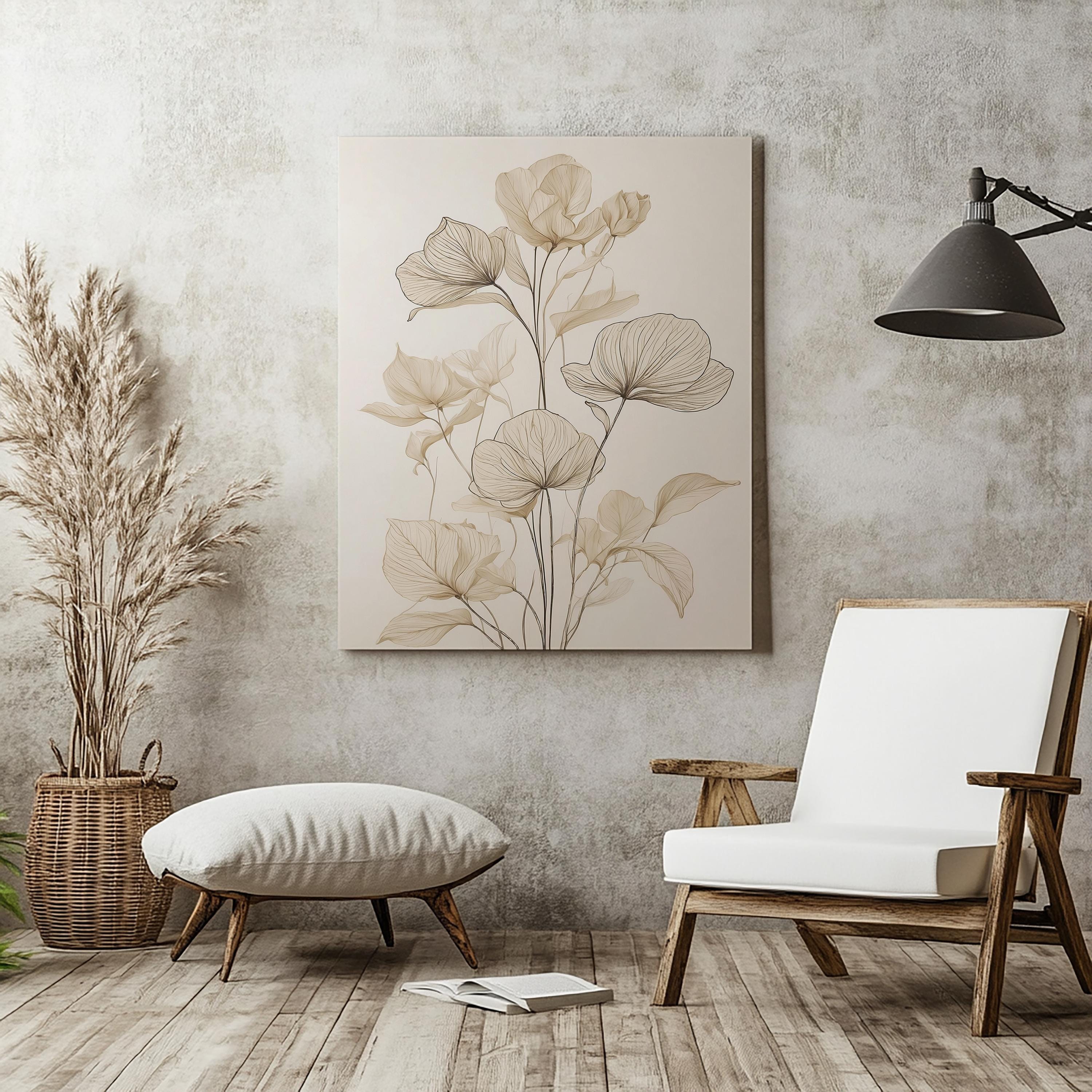 "Sable Stem" celebrates the quiet grace of simplicity. A single, delicate botanical line flows across a softly textured cream background, embodying the serene elegance of Scandinavian design. With its gentle composition and understated tones, this artwork brings balance, warmth, and sophistication to any interior.
