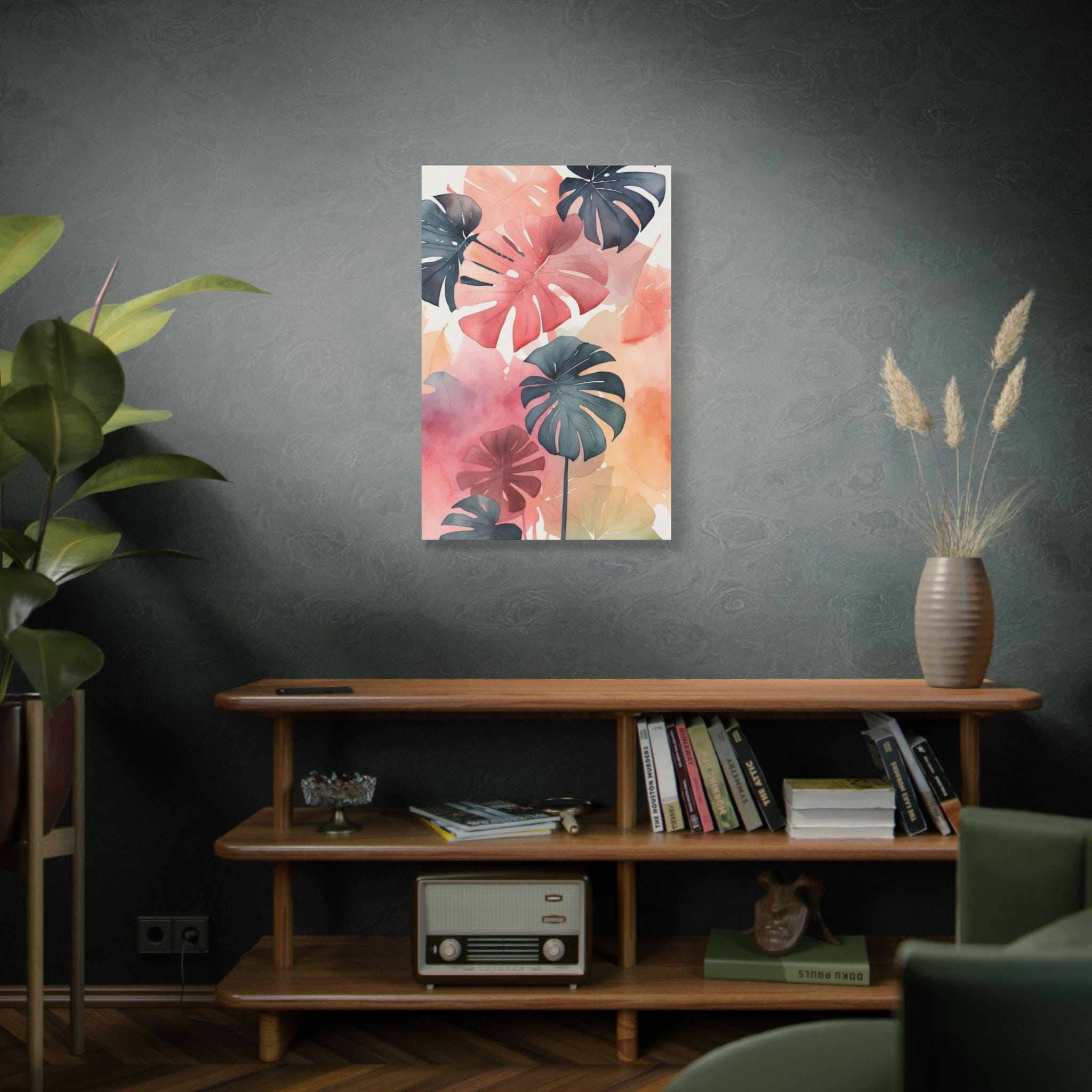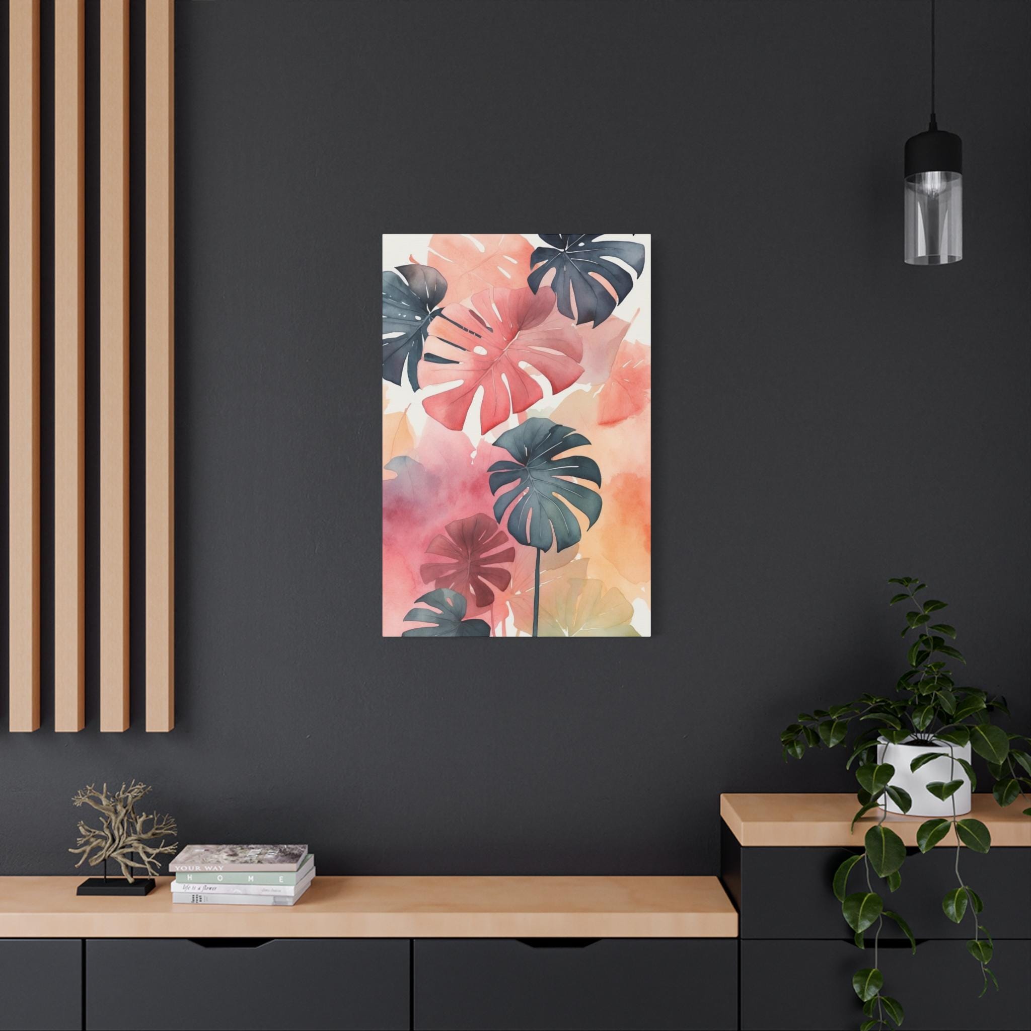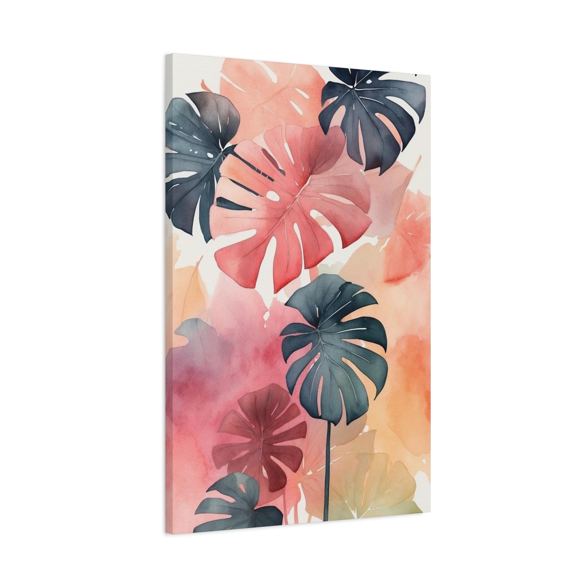"Verdant Fade" blends fluidity and form in a study of calm contrast. A soft watercolor gradient flows gently across the canvas, providing a dreamy backdrop for a single bold monstera silhouette. The result is a balanced interplay of softness and structure — modern, minimal, and effortlessly elegant.