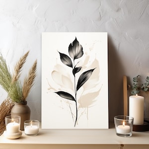 "Whisper Line" celebrates the elegance of restraint — a single botanical form rendered in soft charcoal lines against a subtle pale taupe backdrop. With its intentional use of negative space and gentle texture, this piece embodies modern calm and timeless simplicity.
