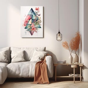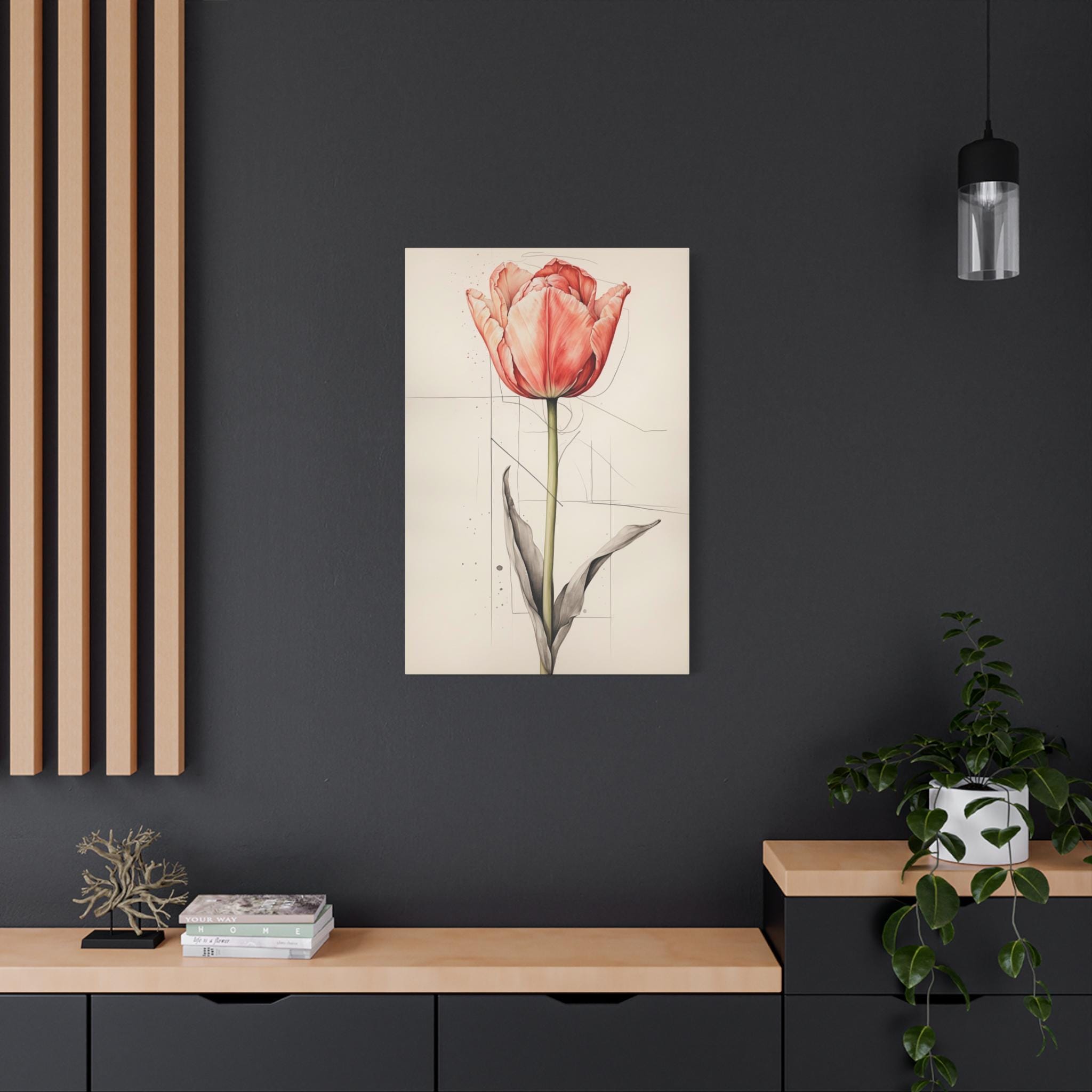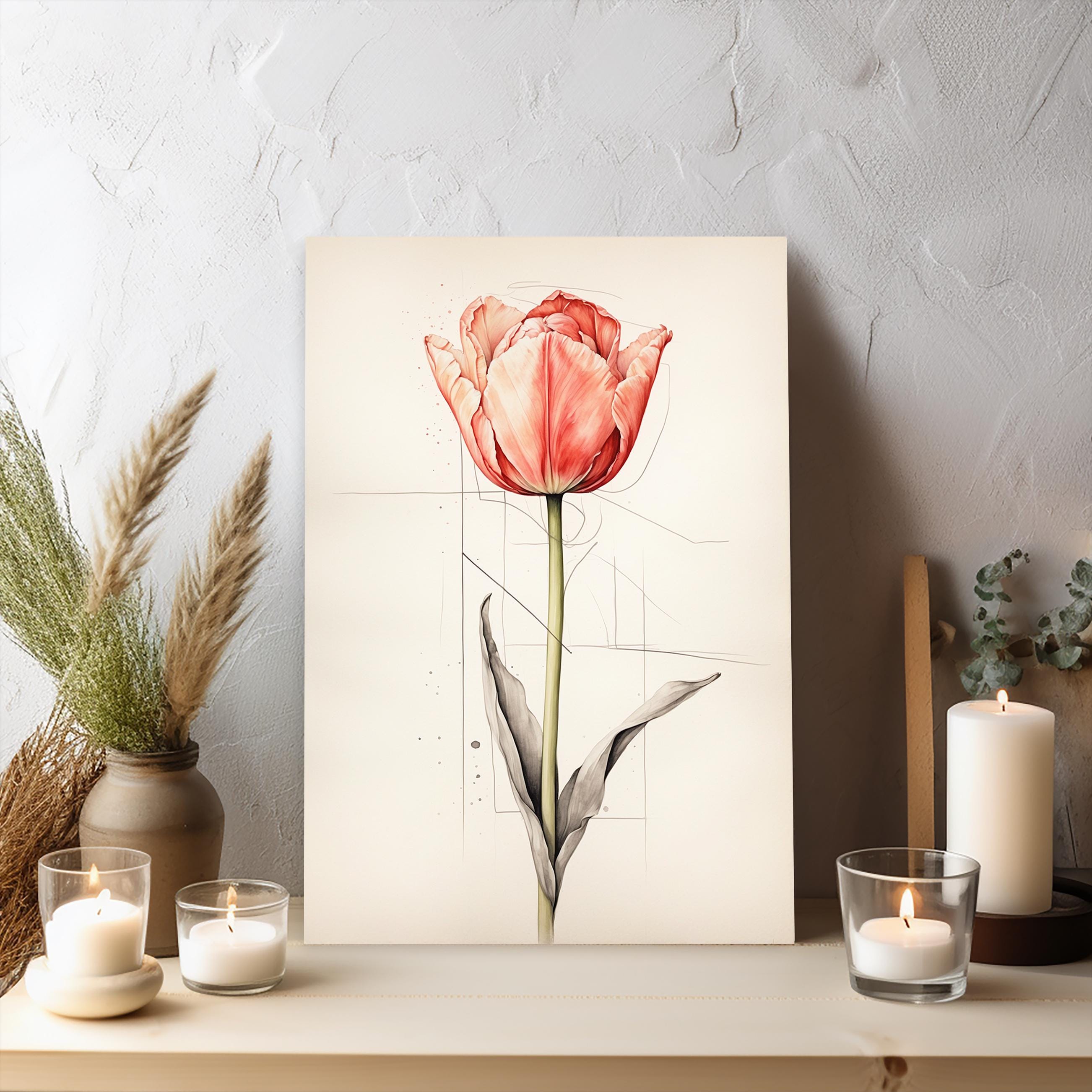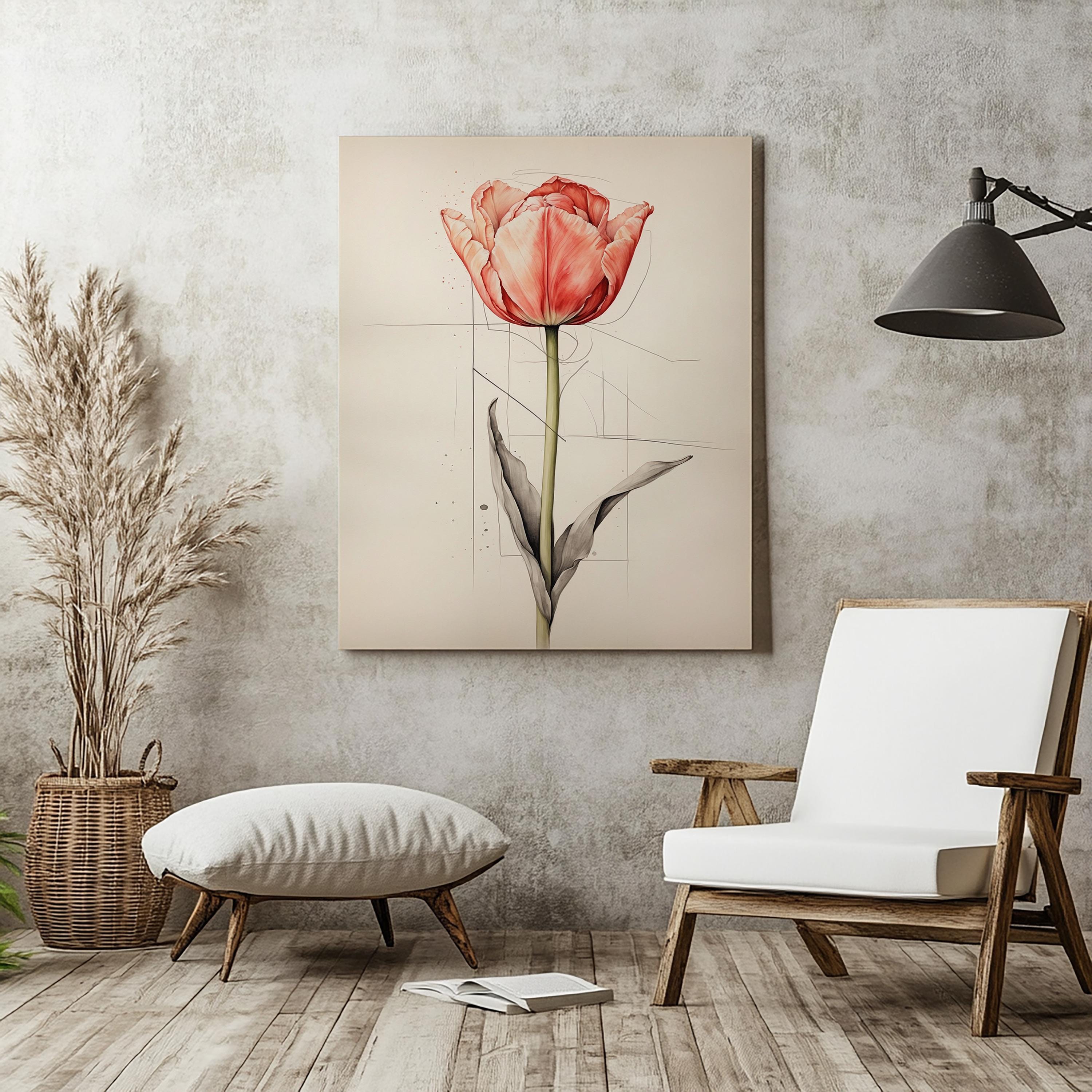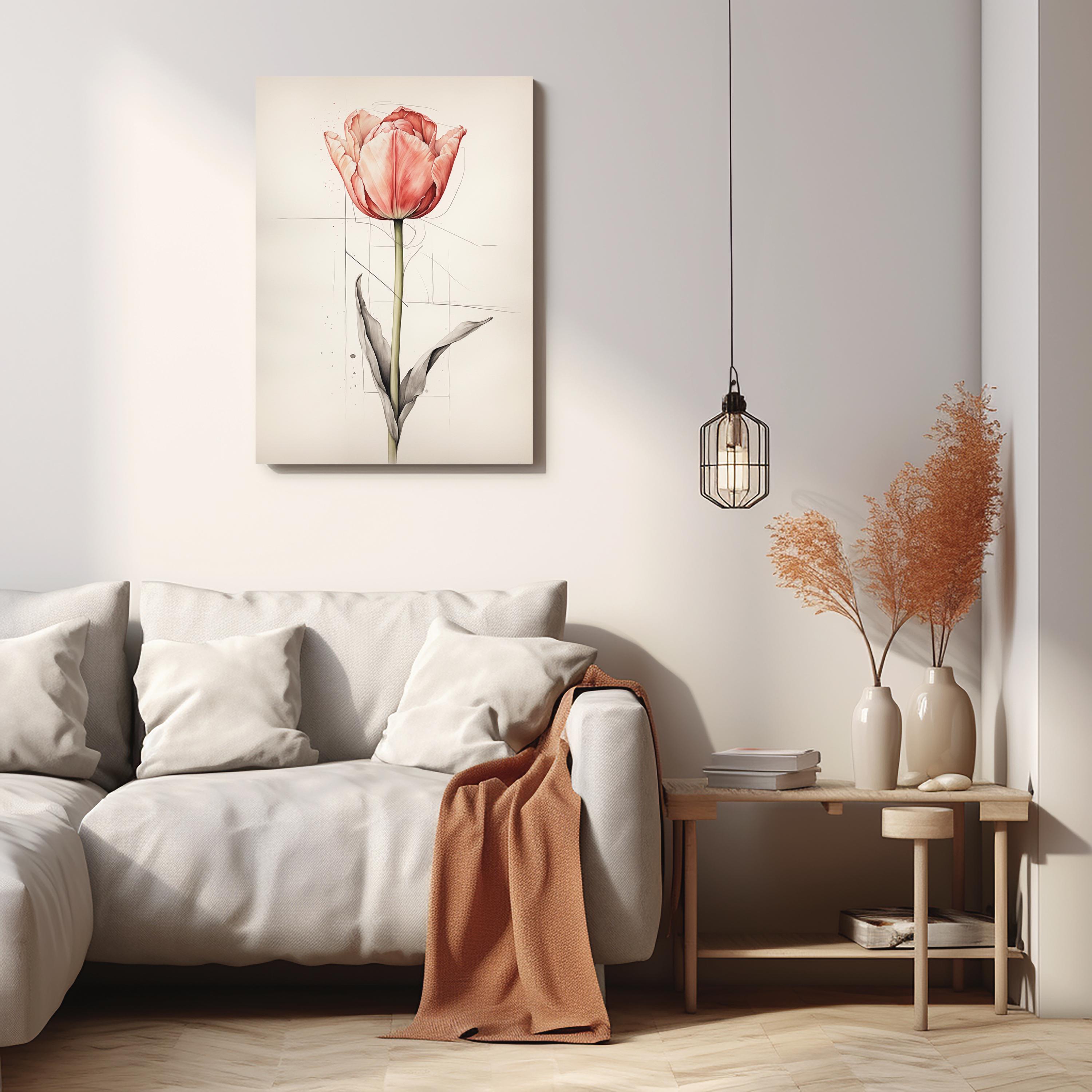 Printed on premium-quality canvas, Tulip Geometry enhances Scandinavian, minimalist, or neutral spaces. Its soft palette and understated design bring calm, sophistication, and timeless botanical charm to bedrooms, living rooms, or offices.