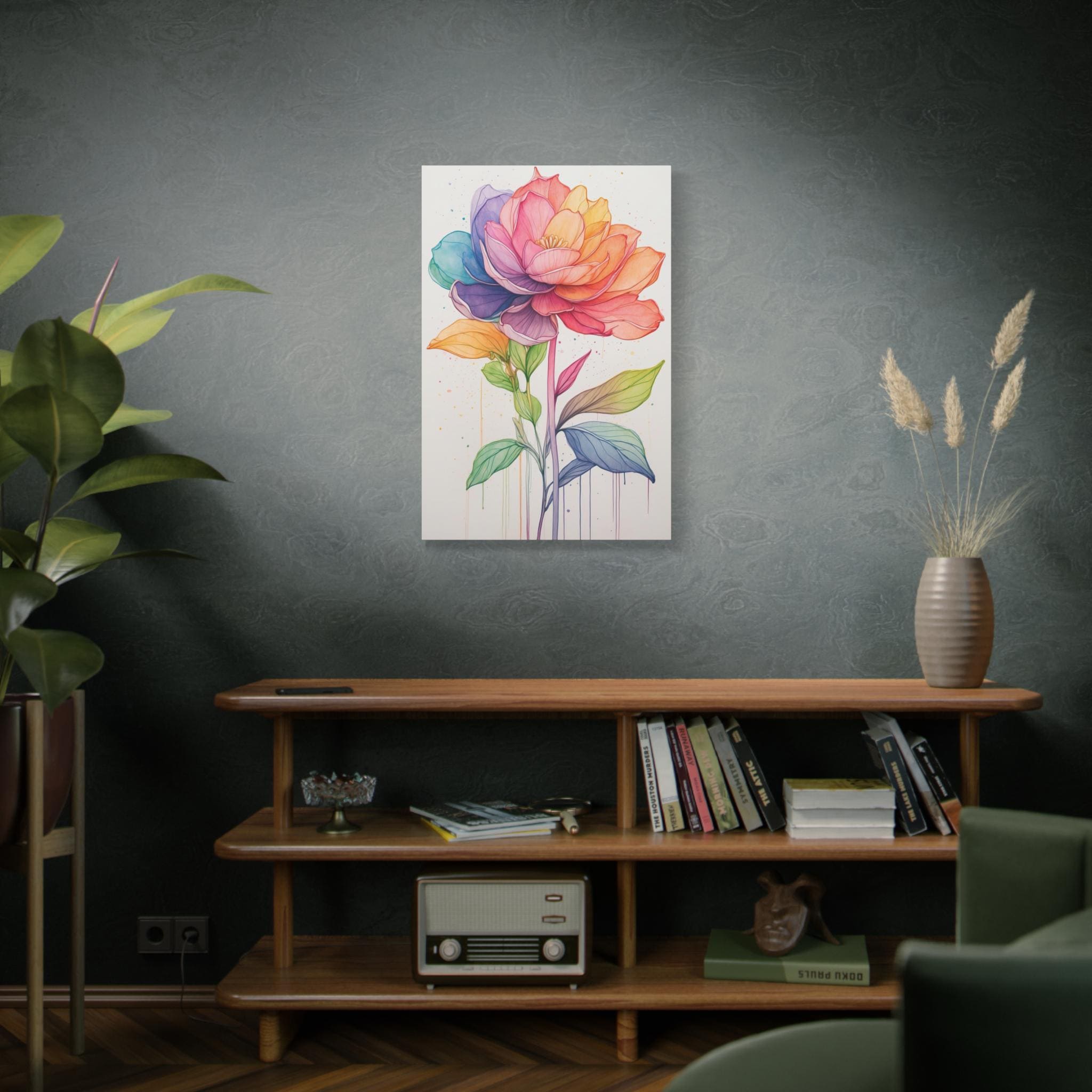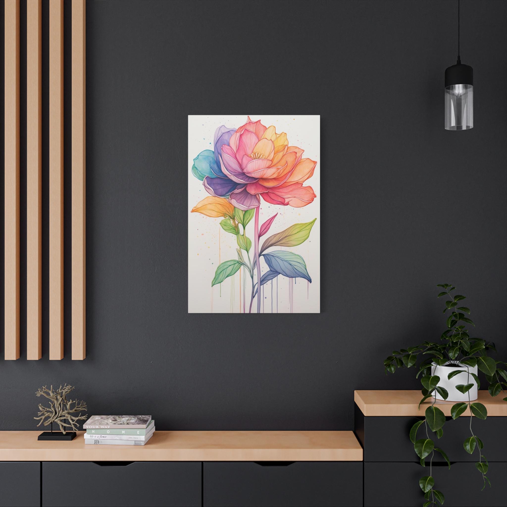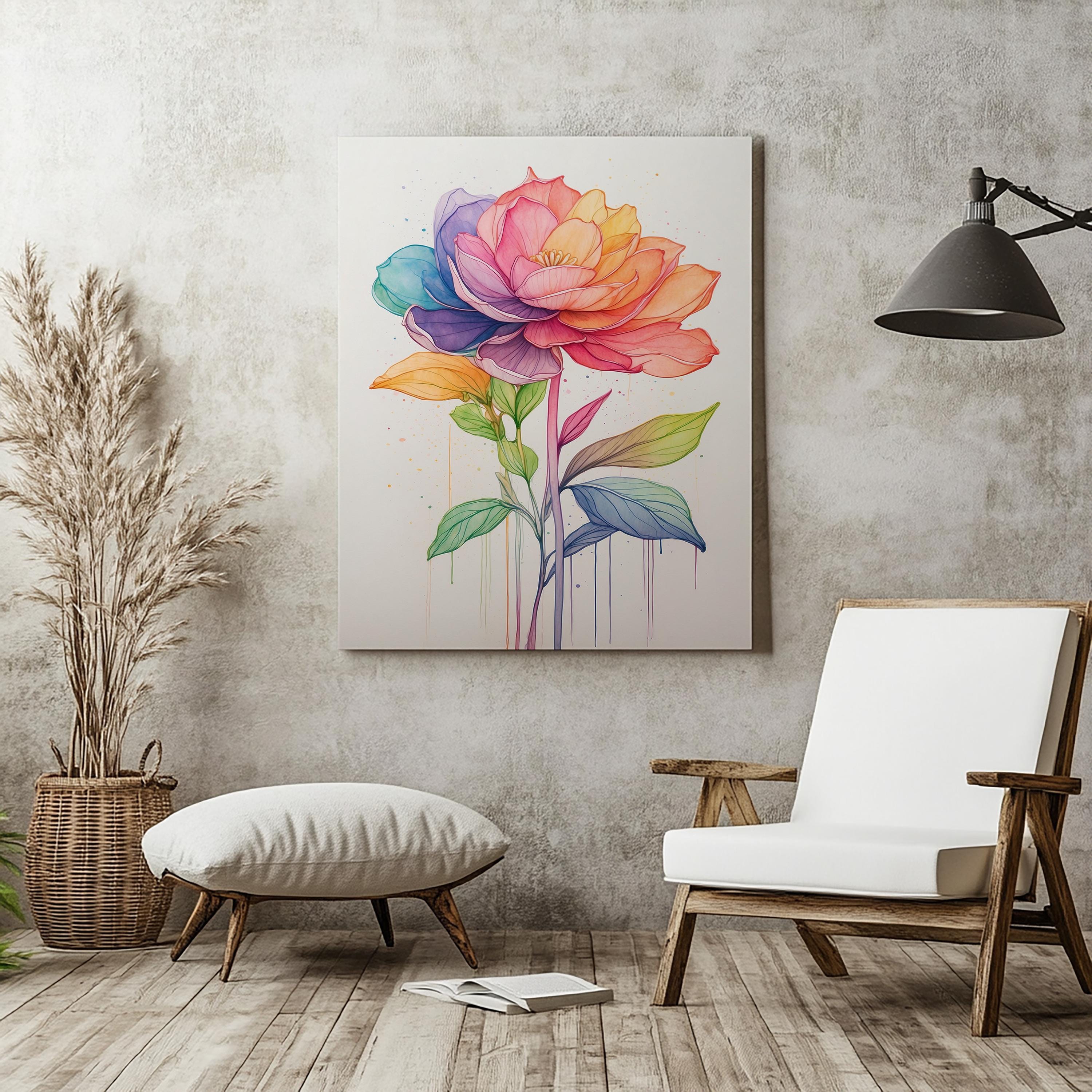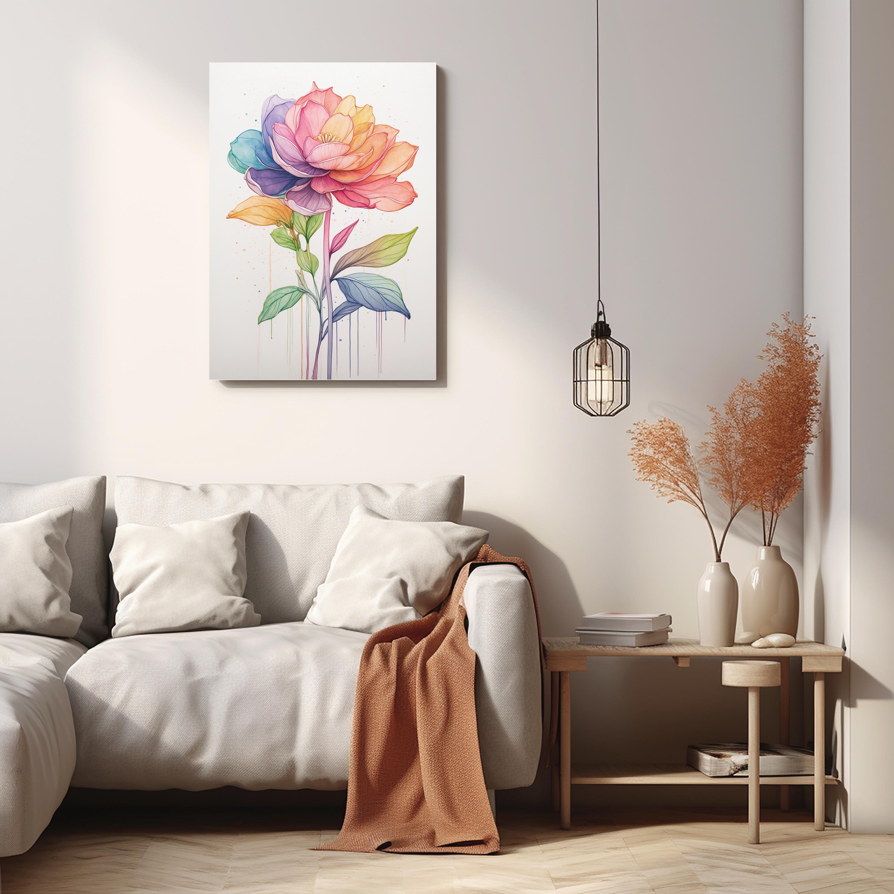 Printed on premium-quality canvas, Rainbow Bloom adds cheerful sophistication to contemporary, Scandinavian, or modern interiors. Its colorful palette and clean design make it a versatile statement piece for bedrooms, living rooms, or creative spaces, combining joy with refined botanical beauty.