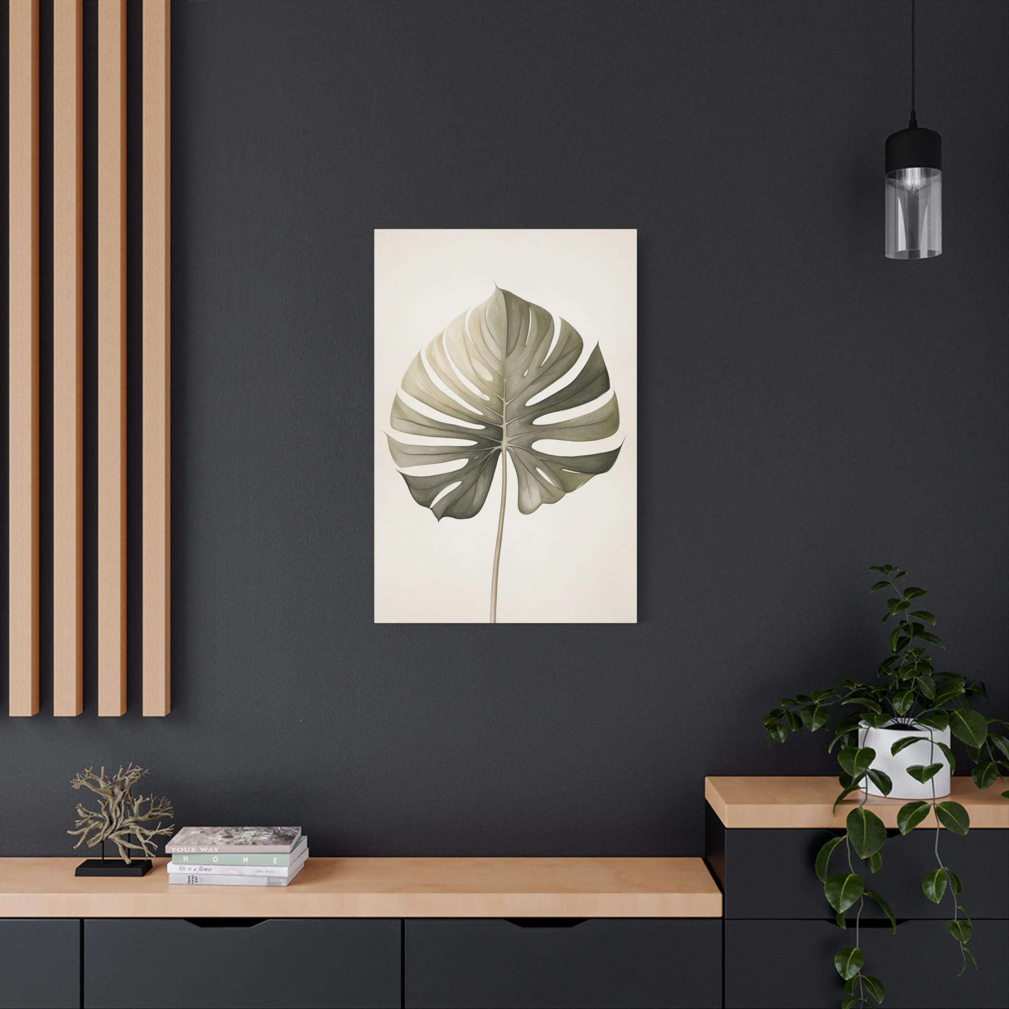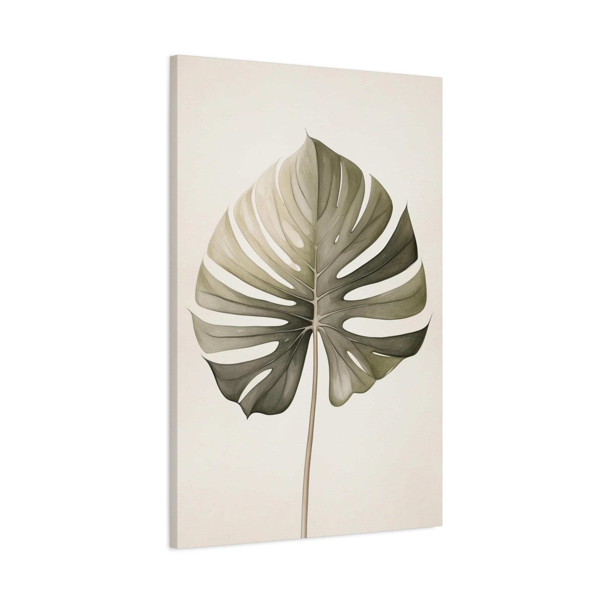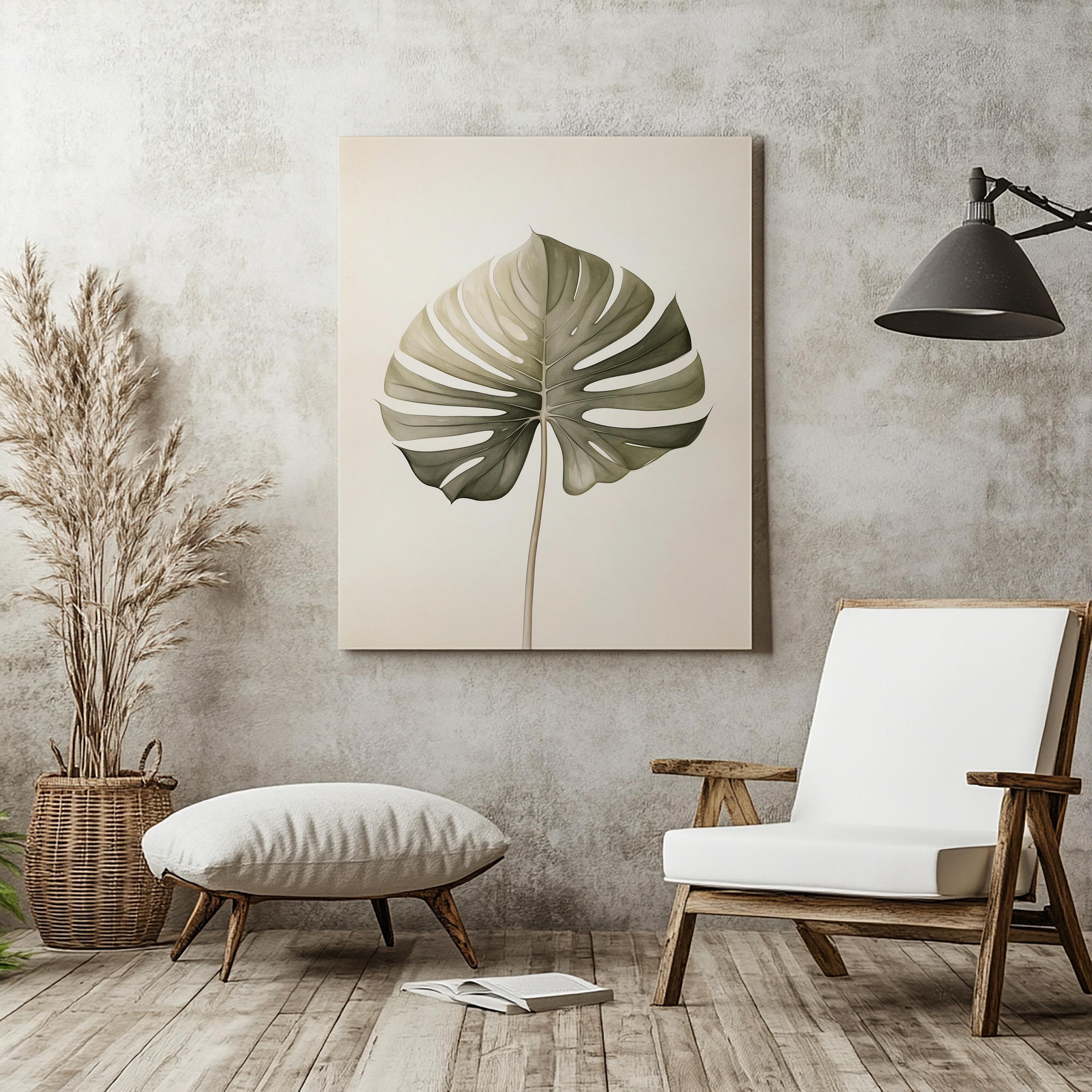 "Monstera Calm" captures the quiet elegance of modern simplicity. A single monstera leaf, rendered in soft matte watercolor texture, rests gracefully at the center of a clean cream background. The gentle tones and airy composition reflect a sense of balance and calm — an ode to nature’s effortless design.