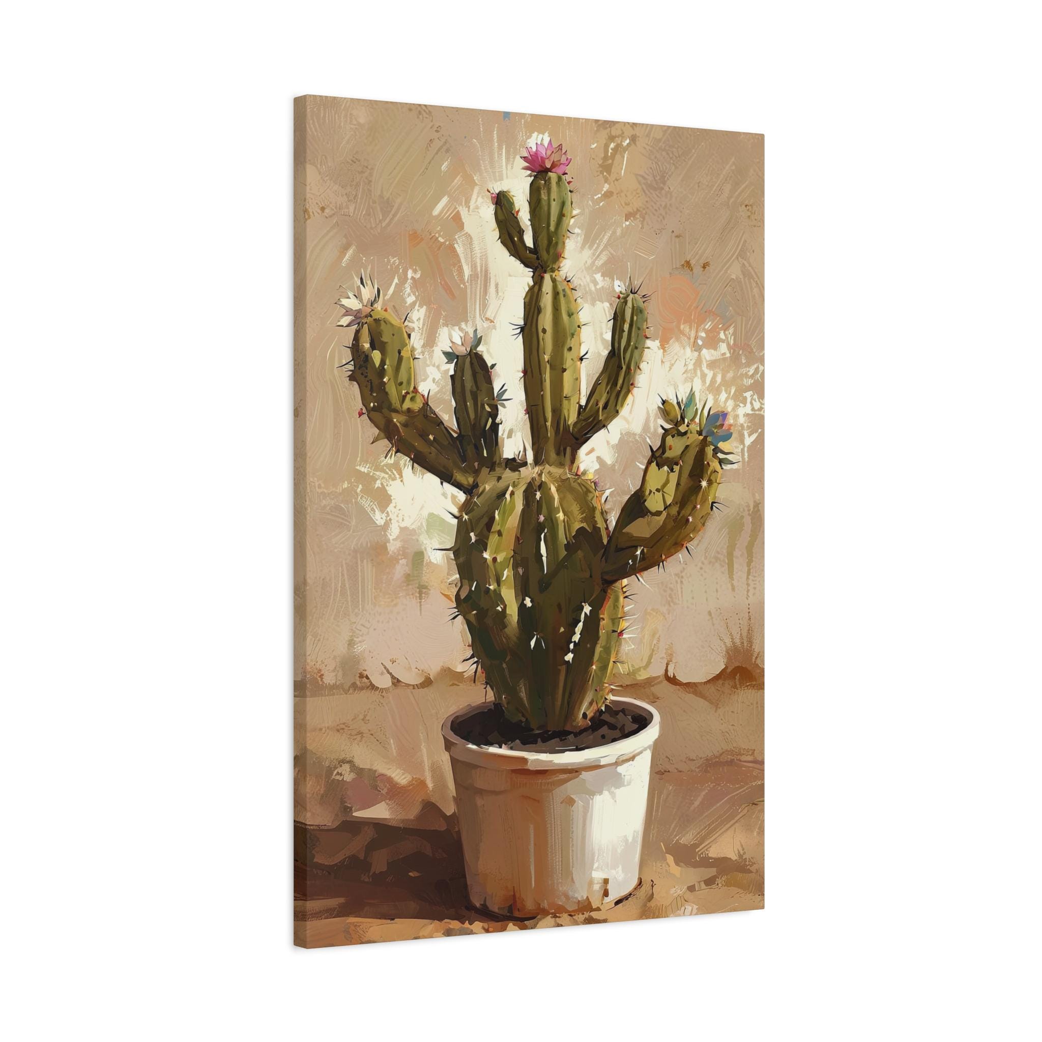 "Desert Echo" captures the serene essence of arid landscapes through minimalist abstraction. Soft cactus forms are layered with sandy beige textures, creating a modern, flat botanical composition that is calm, sophisticated, and visually balanced.